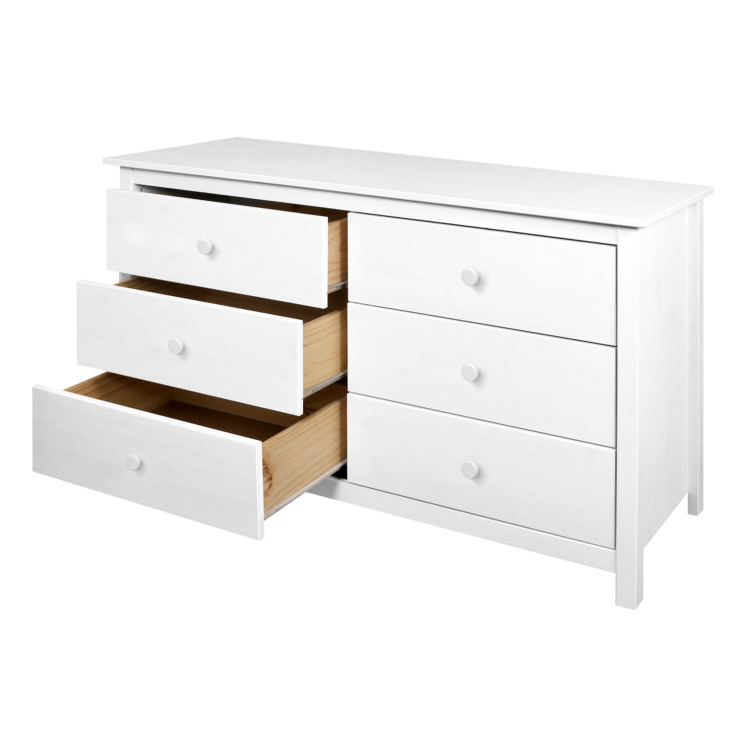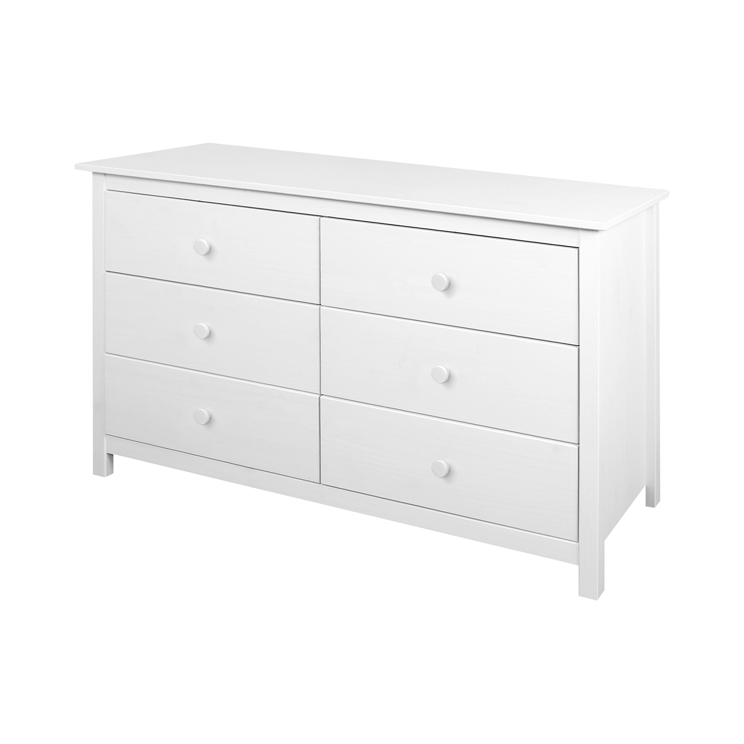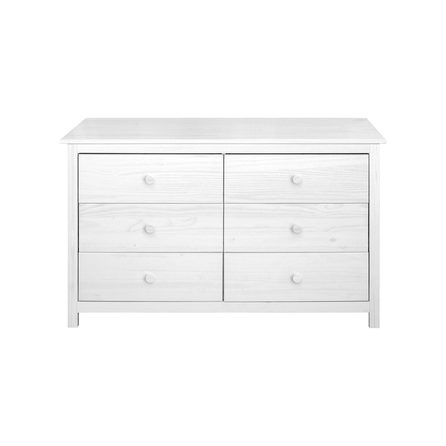 materiál masiv borovice, barevné provedení bílý lak šest zásuvek s kovovými pojezdy rozměr zásuvky (š/h/v) 52 × 33 × 19 cm