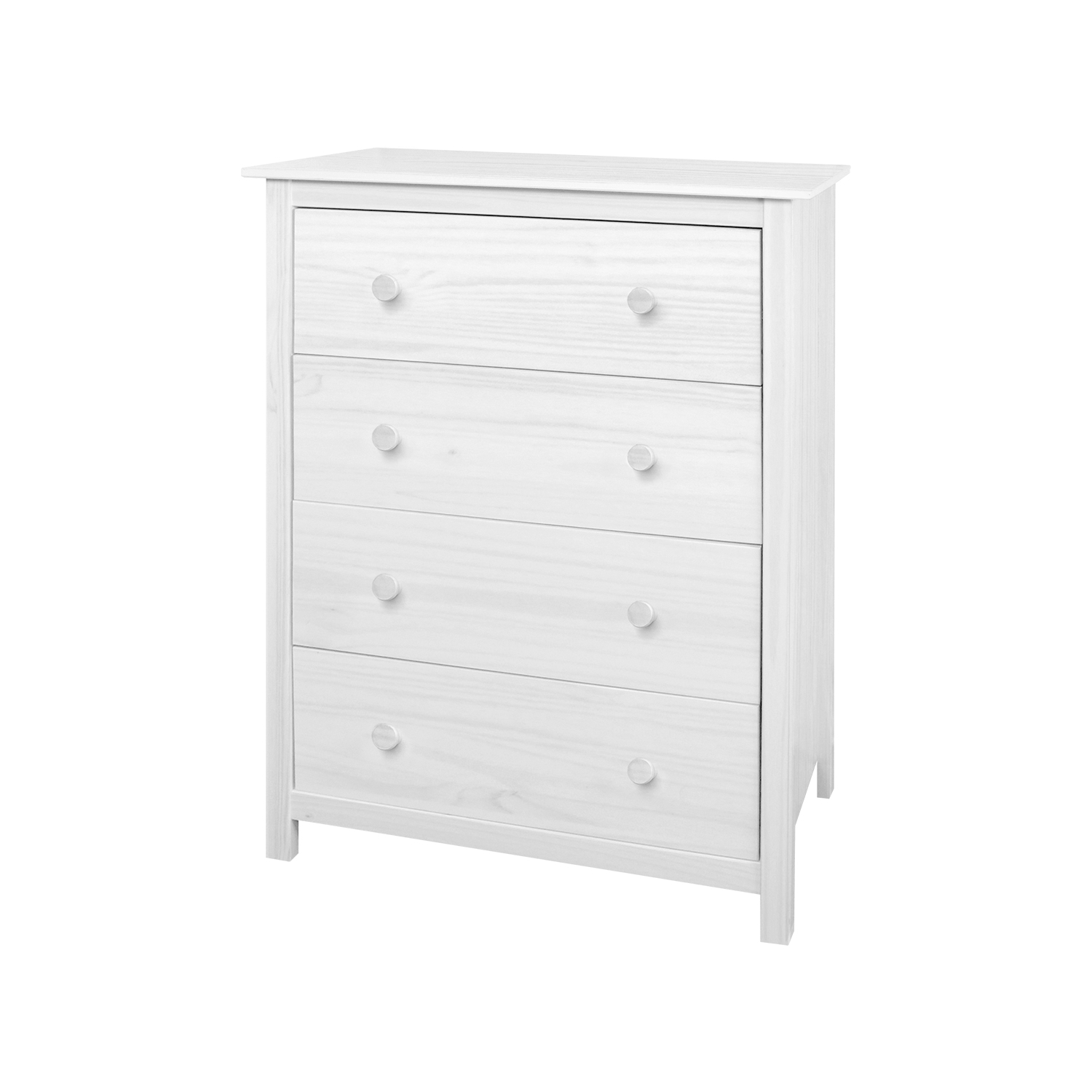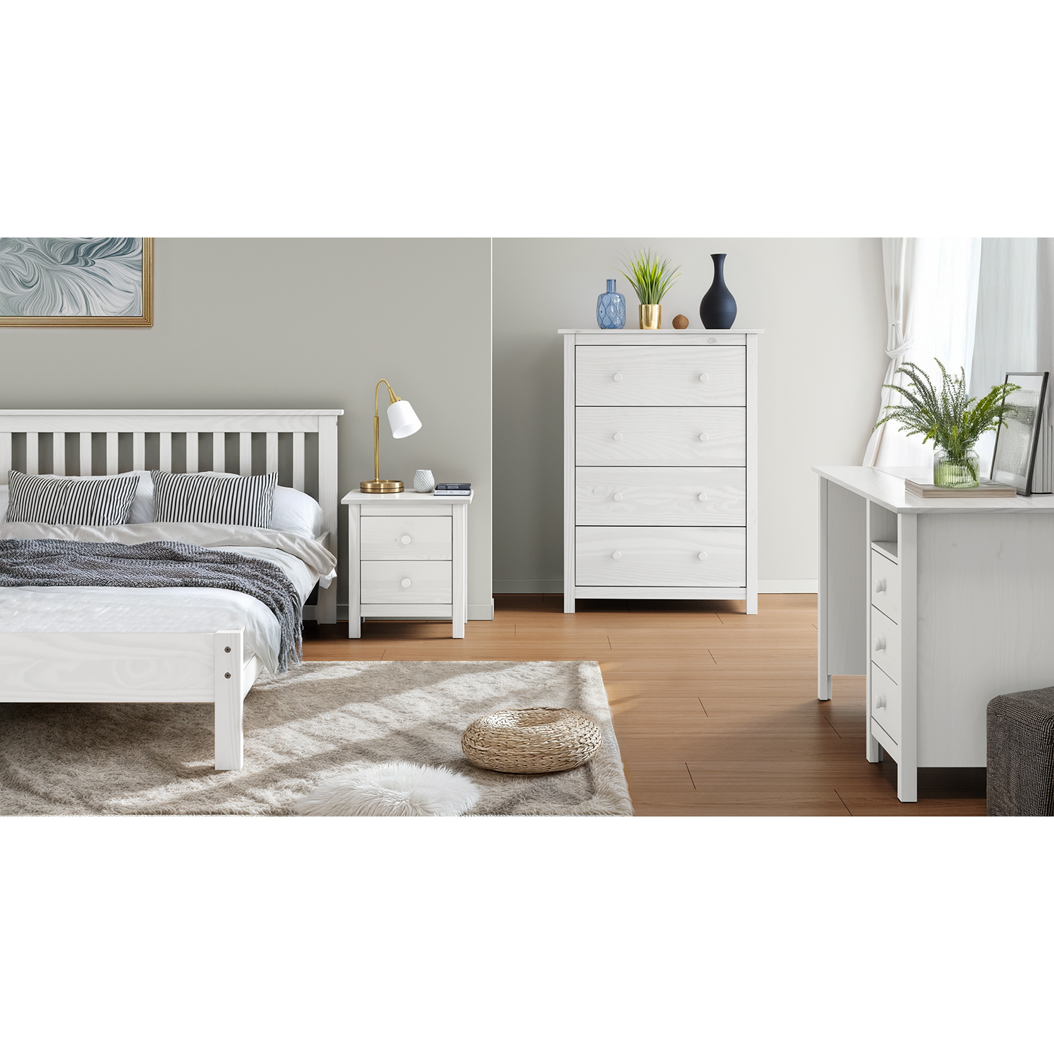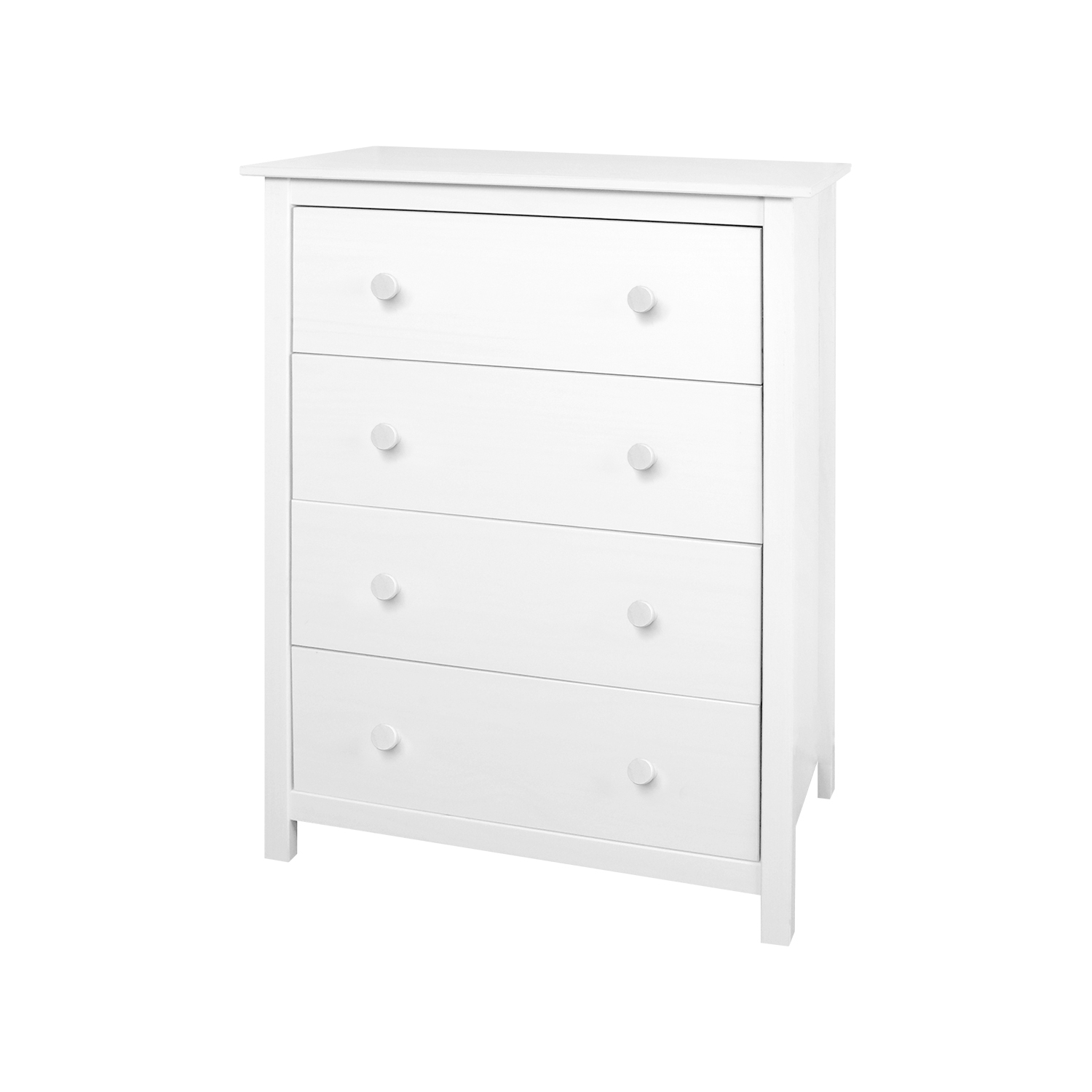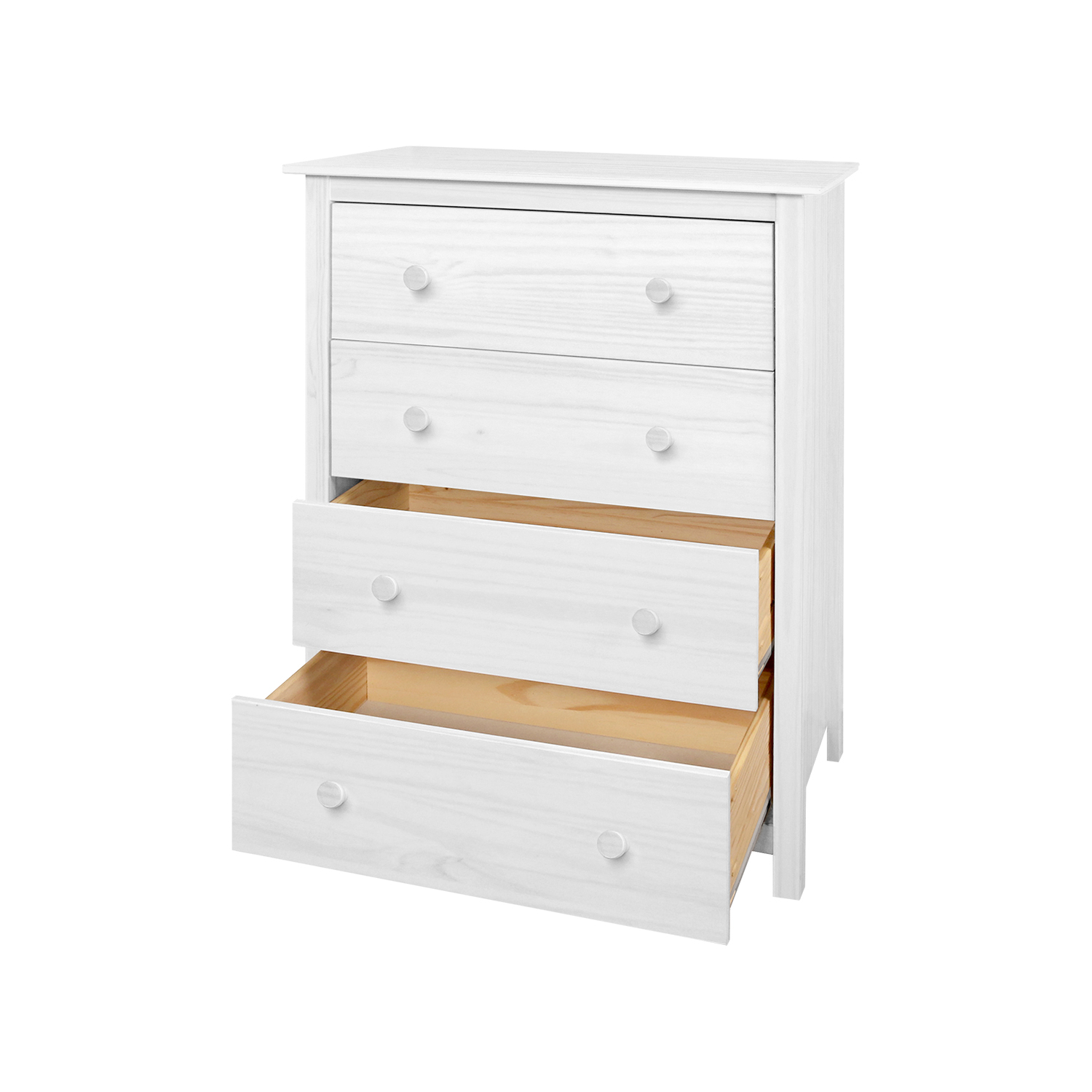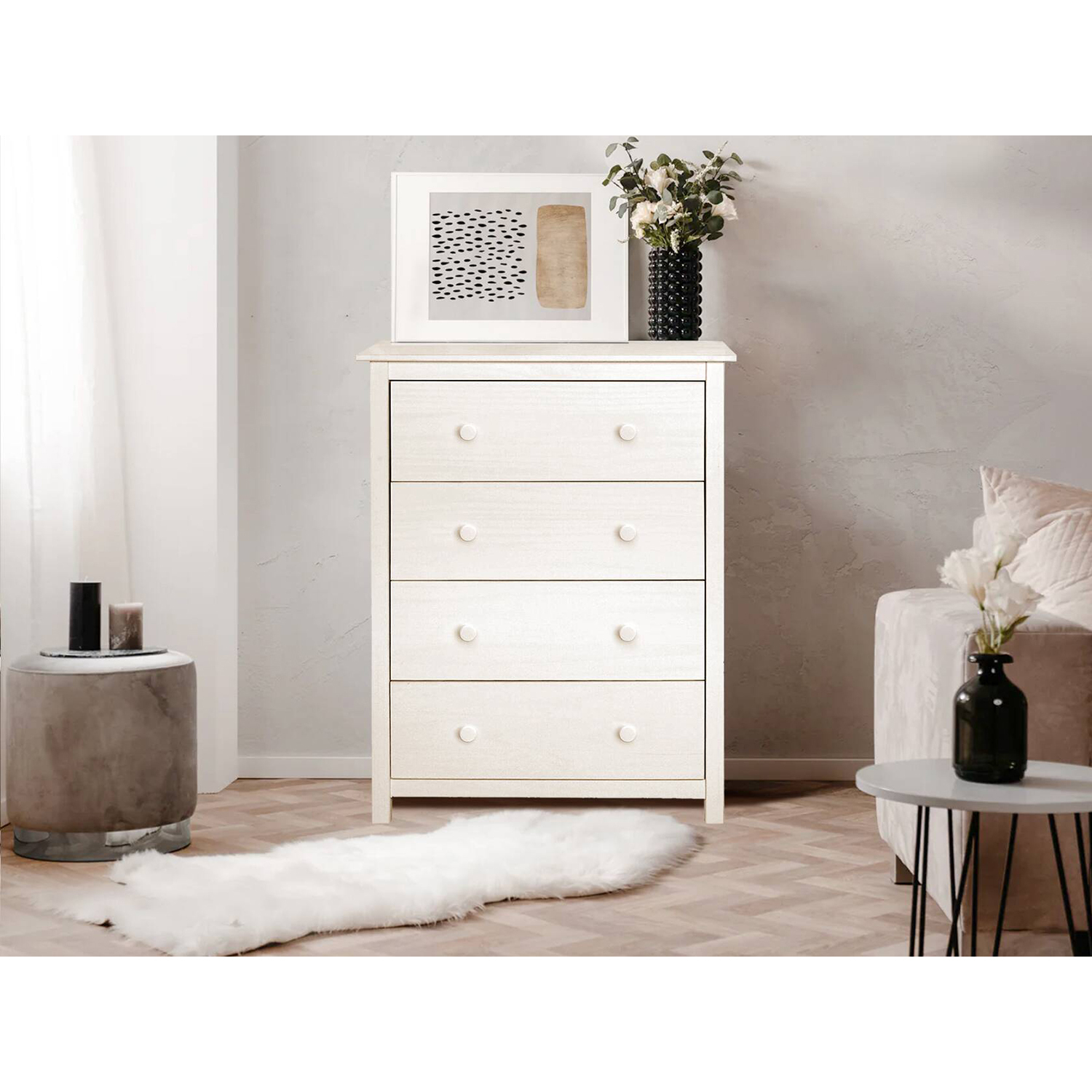 materiál masiv borovice, barevné provedení bílý lak čtyři zásuvky s kovovými pojezdy