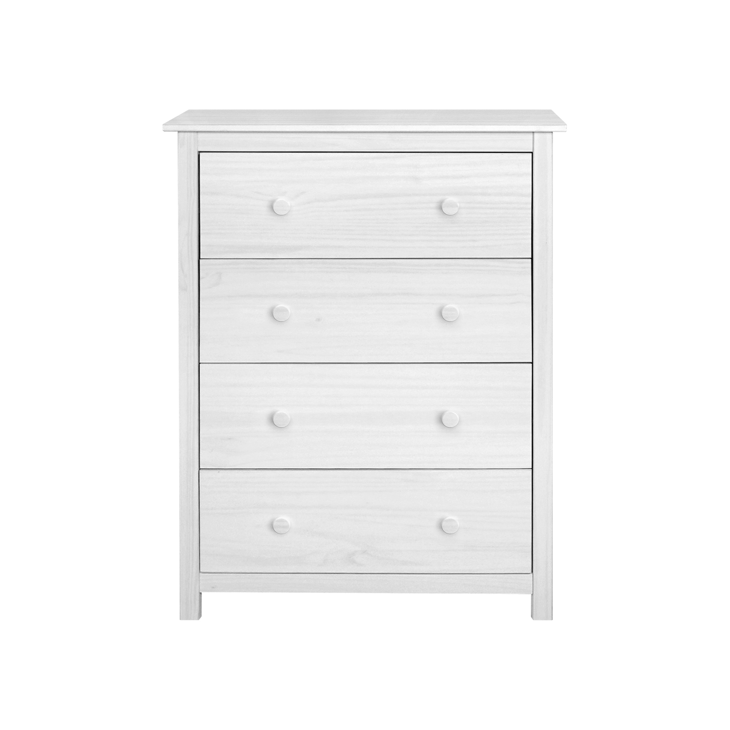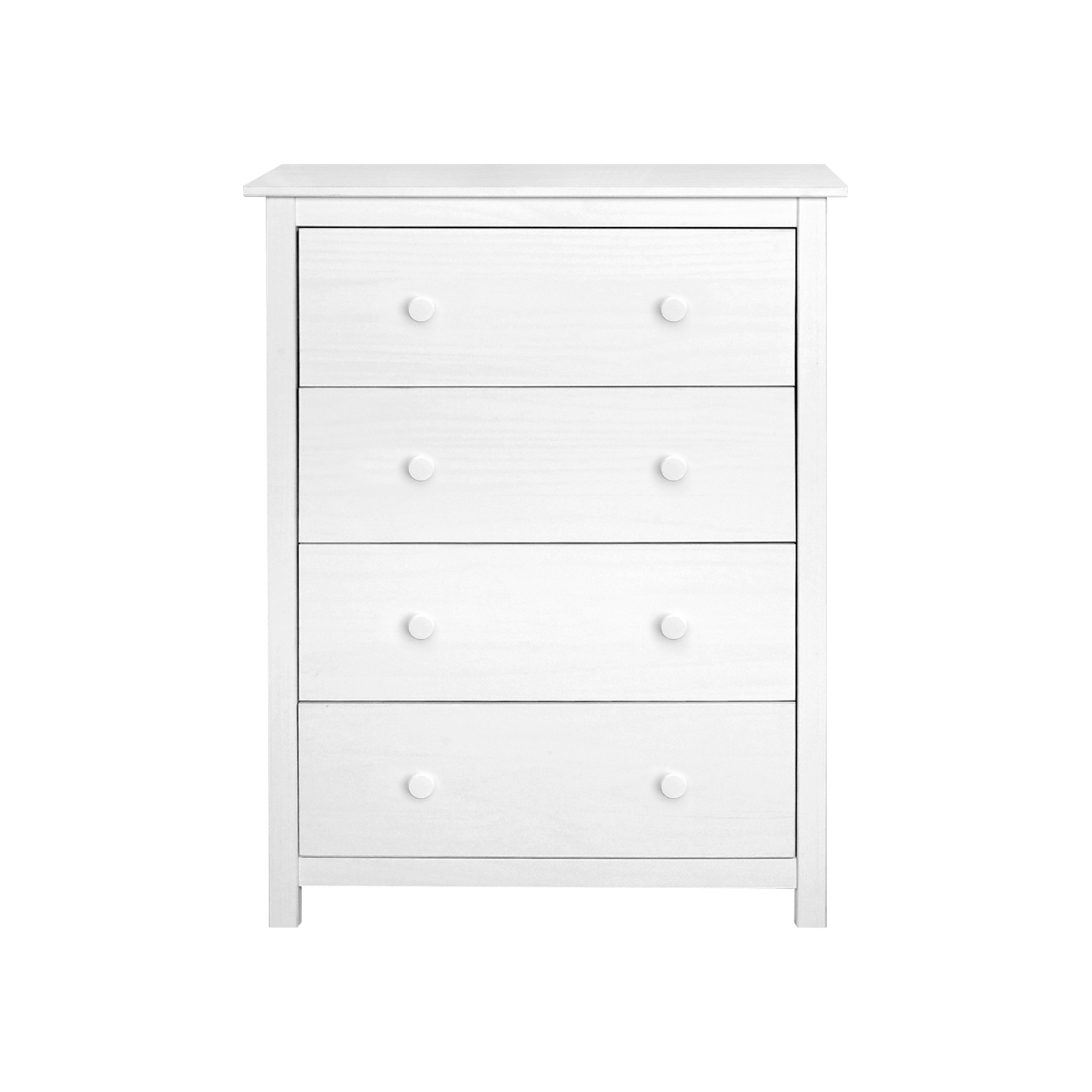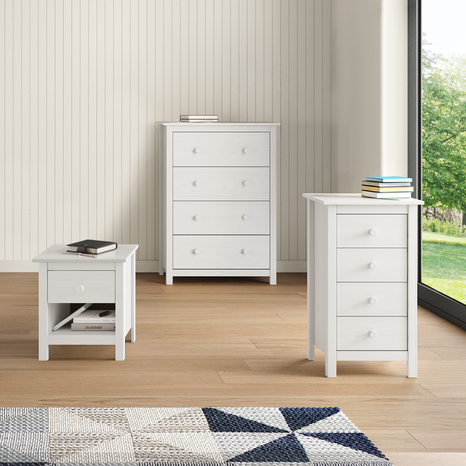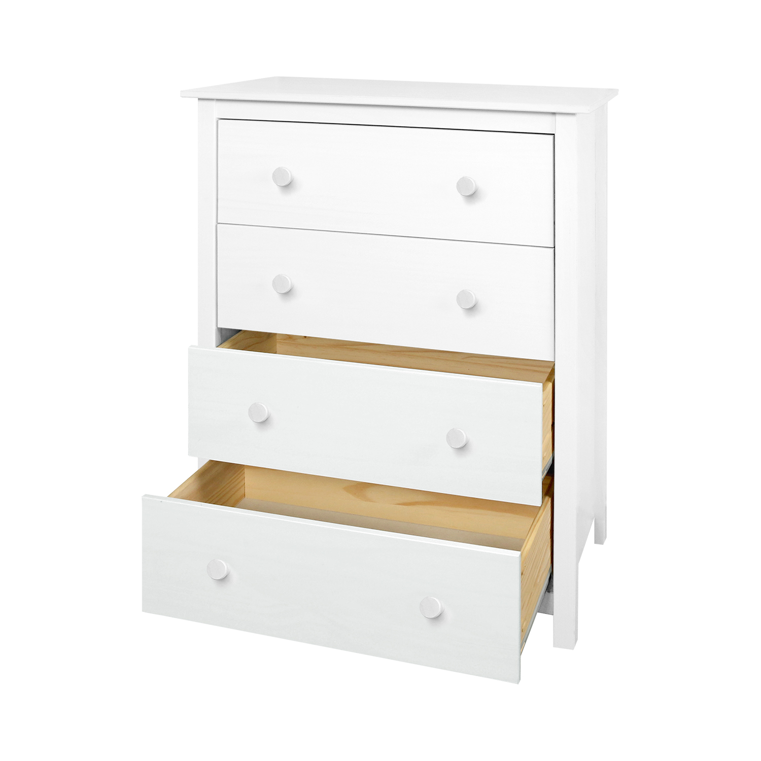 materiál masiv borovice, barevné provedení bílý lak čtyři zásuvky s kovovými pojezdy