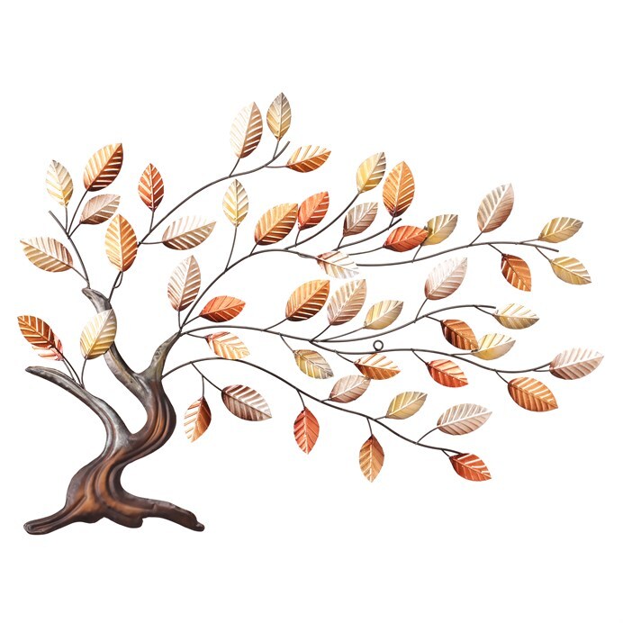 Tato velká kovová závěsná ozdoba na zeď, představující strom s různobarevnými lístky, bude ústředním prvkem vašeho interiéru. S jejími rozměry (100 x 80 cm) a jedinečným designem představuje dokonalý způsob, jak přidat do vašeho prostoru nádech elegance a originality.Střídání zelených, stříbrných a měděných odstínů lístků vytváří výrazný působivý kontrast, který přitahuje pozornost. Tento kovový strom se stane na stěně výrazným prvkem. Vyzařuje kreativitu a nápaditost a dodá vašemu interiéru osobitý charakter. Buďte připraveni na obdiv vašich návštěvníků, kteří budou fascinováni touto jedinečnou závěsnou ozdobou ve formě kovového stromu.