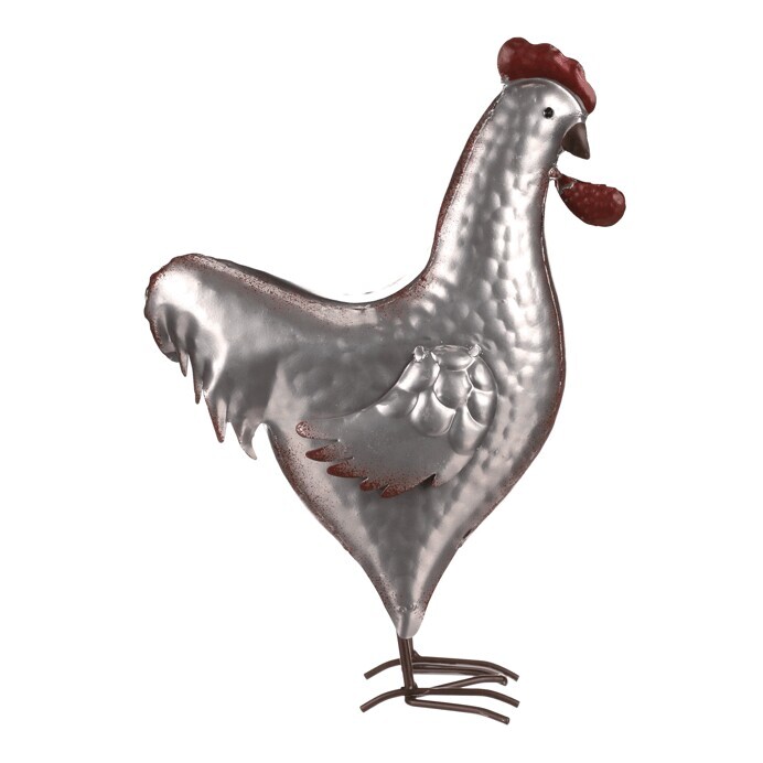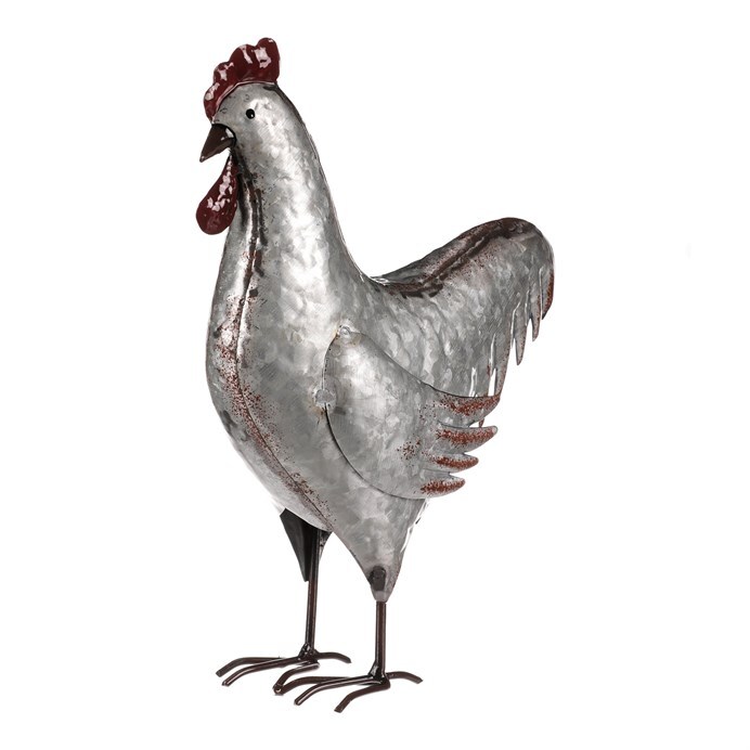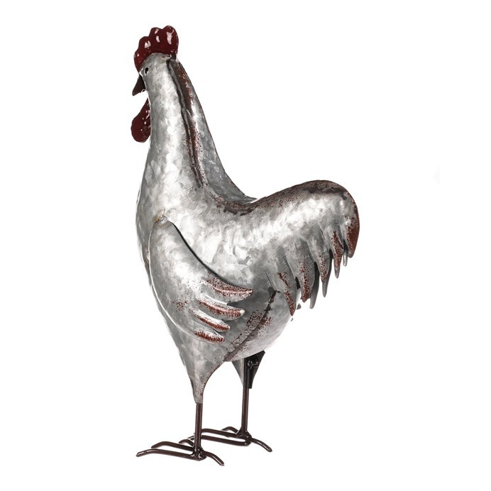 Tato kovová dekorace v podobě kohouta je skutečně netradiční a originální zvířecí ozdobou, která se snadno stane středem pozornosti. Je v kovové až stříbrné barvě a místy doplněn hnědými až narezavělými odstíny. Působí dojmem opotřebeného ozdobného předmětu s dlouhou historií. S celoročním využitím je ideální pro interiéry, kde může vytvořit nádhernou a nápaditou atmosféru. Kohout může působit skvěle sám o sobě, nebo být součástí ucelené kompozice s ostatními figurkami. Hodí se spíše do vnitřních, nebo krytých prostor, kde nebude čelit povětrnostním vlivům.