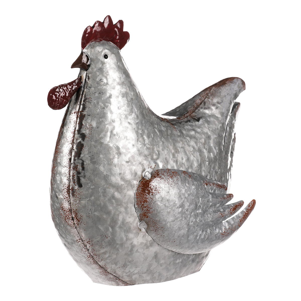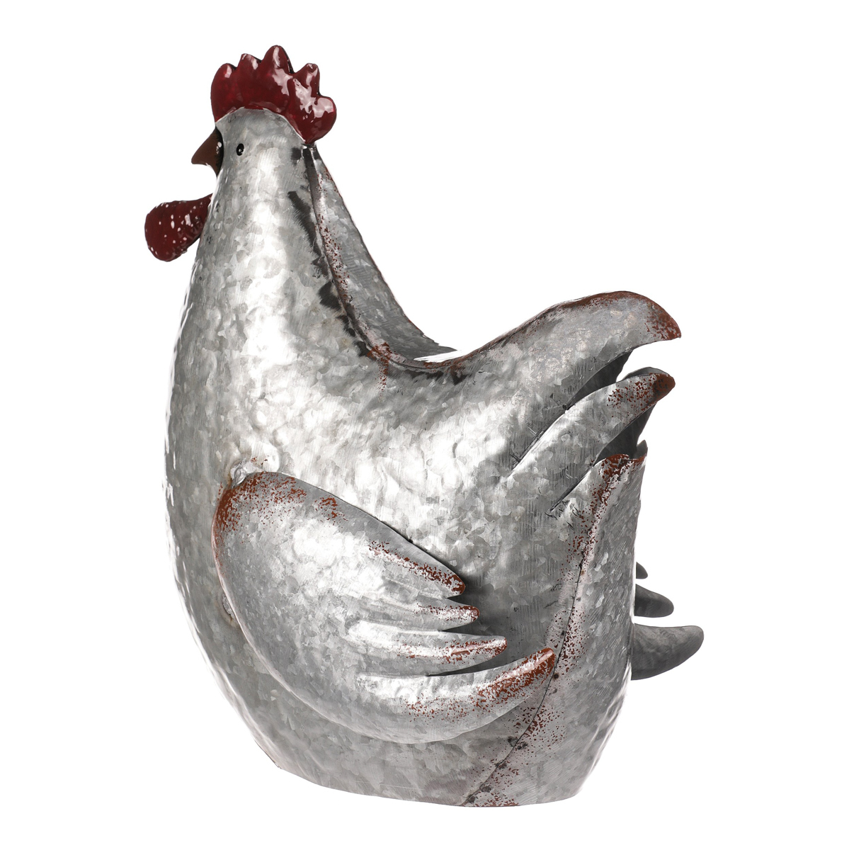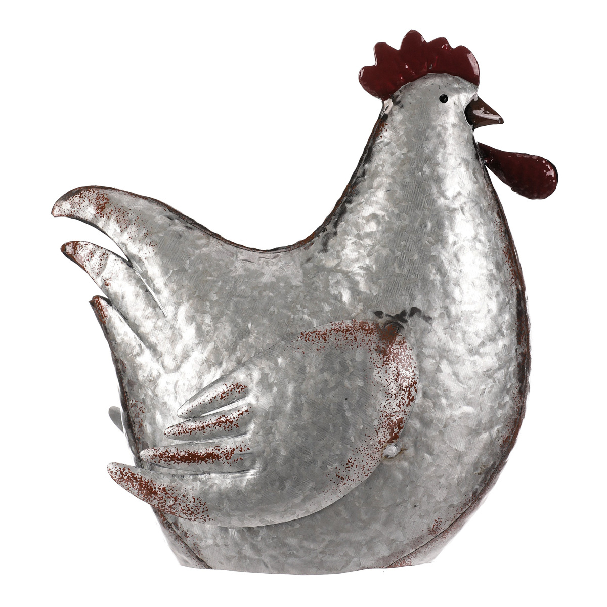 Tato kovová dekorace v podobě slepice je skutečně netradiční a originální zvířecí ozdobou, která se snadno stane středem pozornosti. Je v kovové až stříbrné barvě a místy doplněna hnědými až narezavělými odstíny. Působí dojmem opotřebeného ozdobného předmětu s dlouhou historií. S celoročním využitím je ideální pro interiéry, kde může vytvořit nádhernou a nápaditou atmosféru. Slepice může působit skvěle sama o sobě, nebo být součástí ucelené kompozice s ostatními figurkami, květinami či nejrůznějšími přízdobami. Hodí se spíše do vnitřních, nebo krytých prostor, kde nebude čelit povětrnostním vlivům.