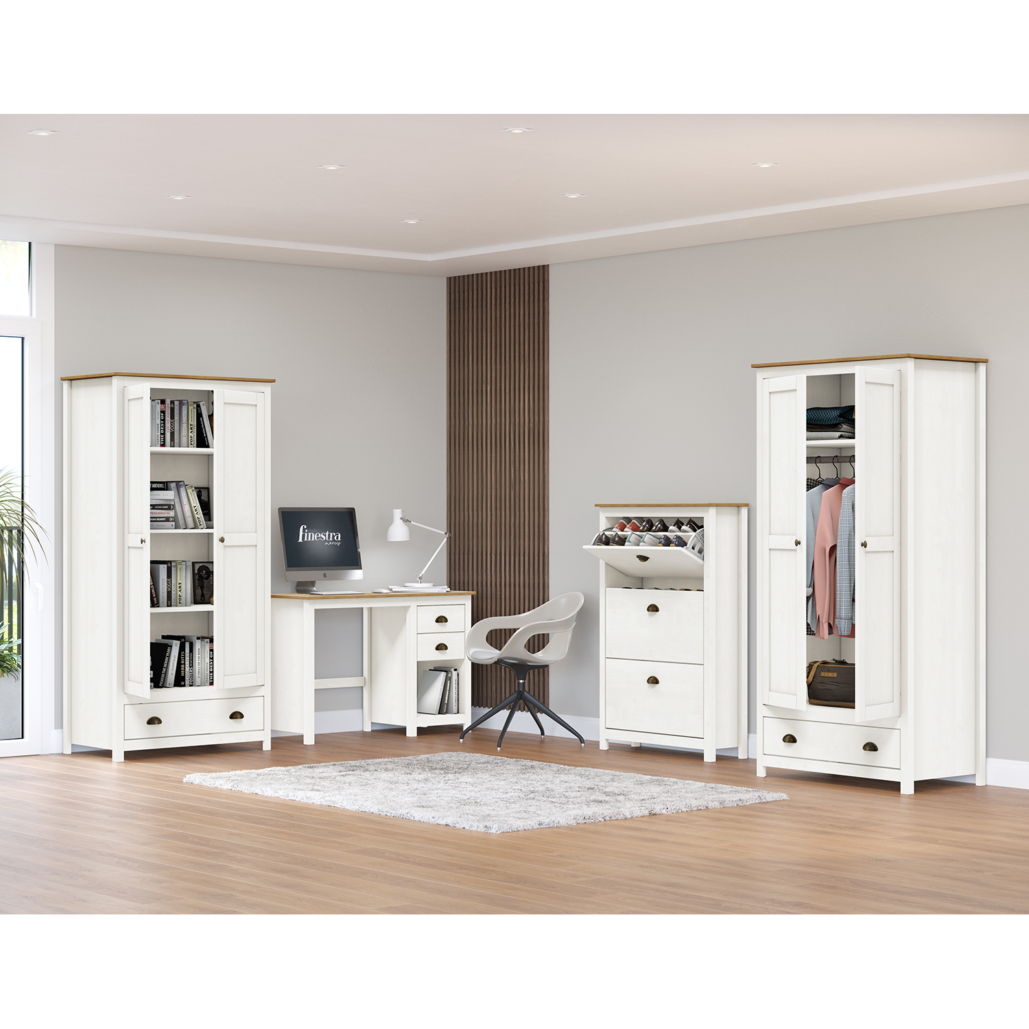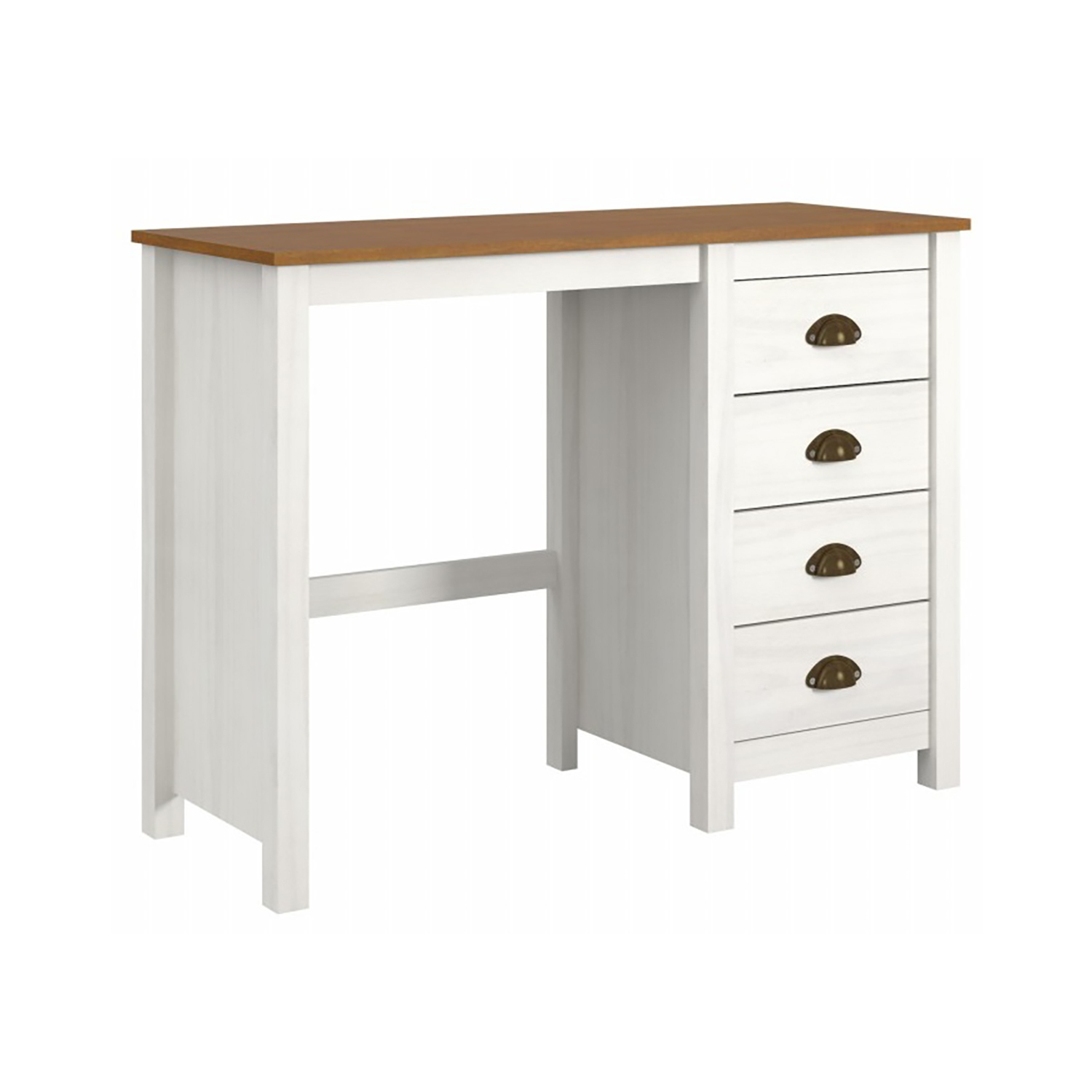 materiál masiv borovice, barevné provedení bílý / hnědý lak čtyři zásuvky s kovovými úchytkami a pojezdy