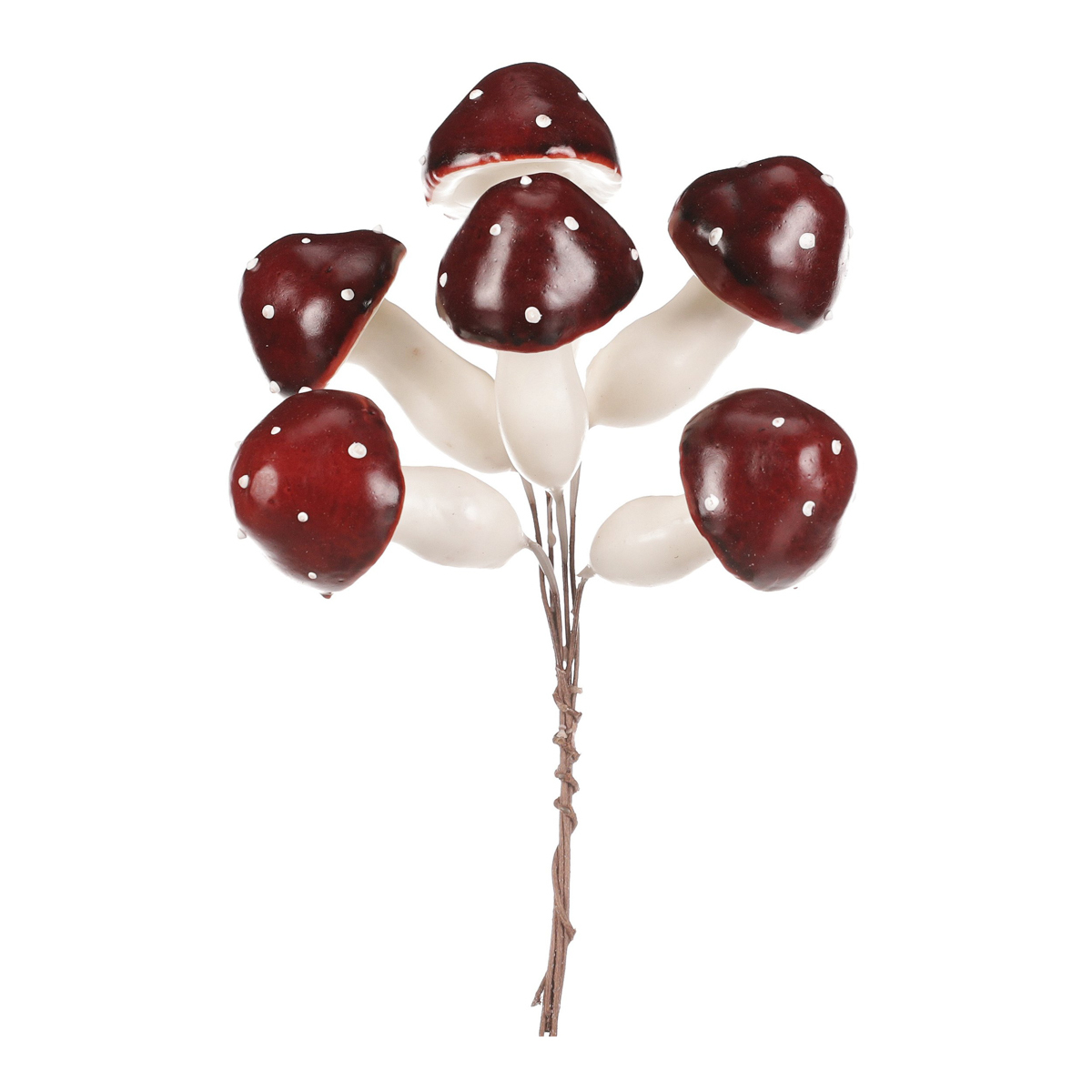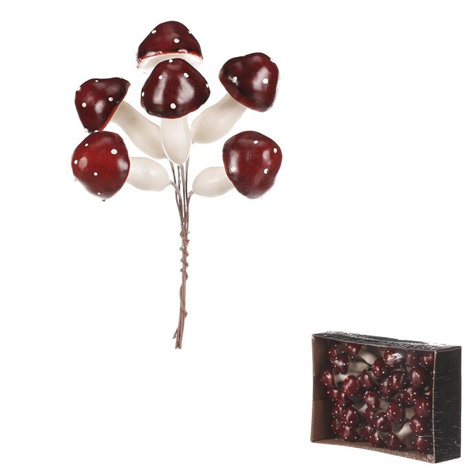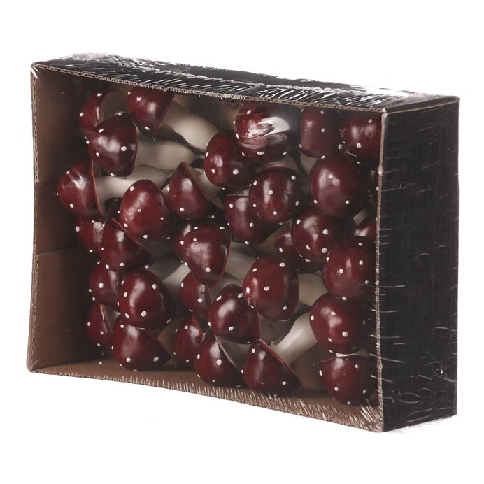 Využijte netradičních prvků pro vánoční výzdobu v podobě drobných umělých hub na drátkách, které mají kloboučky zbarvené do tmavě červené (bordó) barvy. V jedné krabičce najdete celkem 36 kusů, přičemž se barevně hodí skvěle pro toto sváteční období a nabízí tak nepřeberné množství variant jejich využití. Drátky umožnují snadné připevňování na věnce, větvičky, různé části konstrukcí a další vhodná místa. Můžete si díky nim vytvořit kouzelné lesní království plné hub a dodat sváteční atmosféře obohacující a originální ozdobný prvek. Upozorňujeme však, že nejsou určené ke konzumaci a důrazně doporučujeme chránit je mimo dosah dětí.