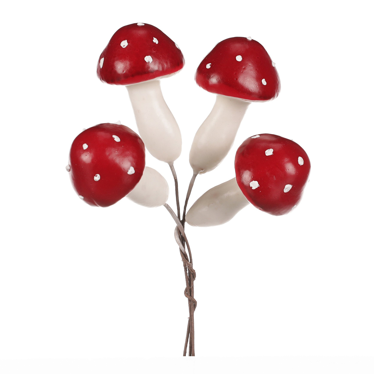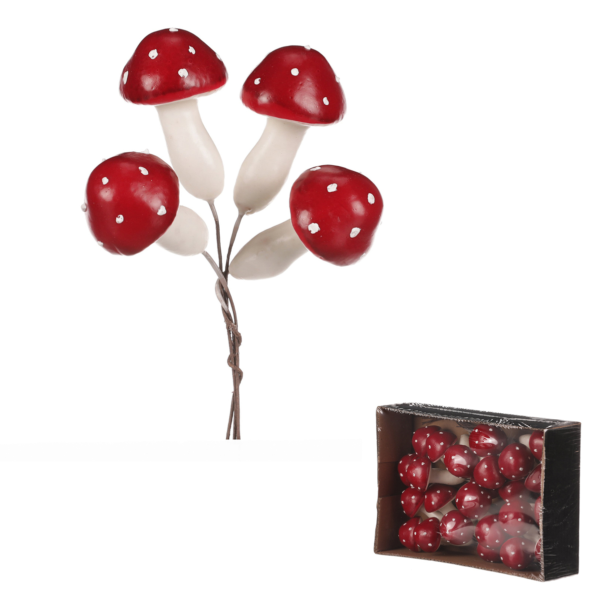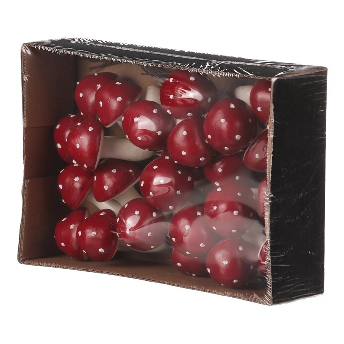 Drobné a lehké plastové houby na drátku jsou všestrannými ozdobami pro vytváření především podzimních aranží. Mají tmavě červenou barvu kloboučků s bílými puntíky, přípomínající mochomůrky červené a balené jsou po 24 kusech v krabičce. Ohebné drátky, na kterých jsou připevněny, umožnují jejich snadnou aplikaci. Můžete si vytvořit své vlastní podzimní lesní zákoutí, na které se bude radost dívat. Díky tomu, že jsou umělé a nádherně zpracované, vám nabízí trvalou a nikdy nekončící krásu pro vaše nápady a kreativní tvorbu. Upozorňujeme však, že nejsou určené ke konzumaci a důrazně doporučujeme chránit je mimo dosah dětí.