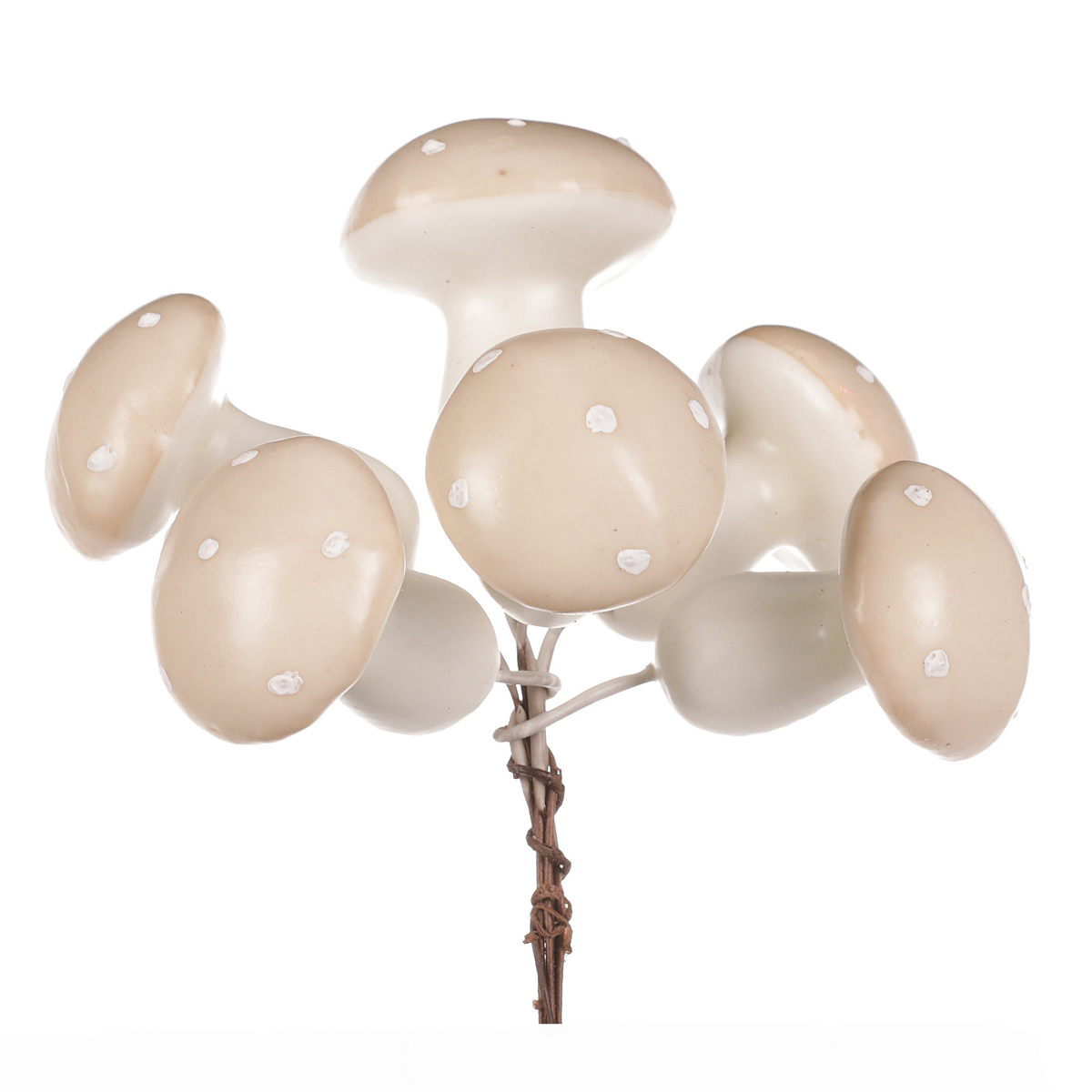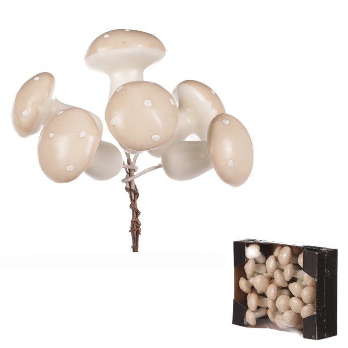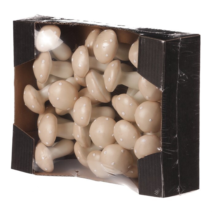 Drobné a lehké plastové houby na drátku jsou všestrannými ozdobami pro vytváření především podzimních aranží. Mají krásnou krémovou barvu kloboučků s bílými puntíky a balené jsou po 30 kusech v krabičce. Ohebné drátky, na kterých jsou připevněny, umožnují jejich snadnou aplikaci. Můžete si vytvořit své vlastní podzimní lesní zákoutí, na které se bude radost dívat. Díky tomu, že jsou umělé a nádherně zpracované, vám nabízí trvalou a nikdy nekončící krásu pro vaše nápady a kreativní tvorbu. Upozorňujeme však, že nejsou určené ke konzumaci a důrazně doporučujeme chránit je mimo dosah dětí.