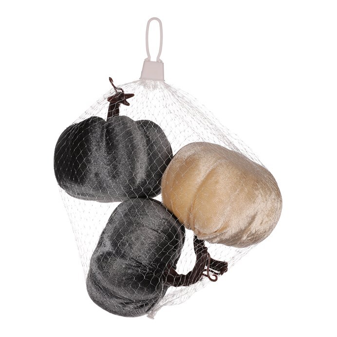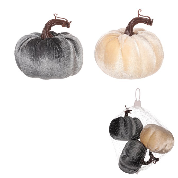 Umělé dýně potažené látkou s hebkým povrchem jsou skvělým podzimním doplňkem pro výzdobu jakéhokoli interiéru. Balené jsou po 3 kusech v síťce, všechny ve stejných velikostech, ale 2 různých odstínech (2x tmavě šedá a 1x krémová), a nabízejí nekonečné možnosti aranžování. S jejich všestranností a příjemným vzhledem jsou ideální pro vytvoření hřejivé podzimní atmosféry. Nejen, že tyto tykvovité plody dobře vypadají, ale navíc jsou velmi příjemné na dotek. Můžete je snadno kombinovat s dalšími ozdobami dle fantazie a schopností, tak aby zrovna ta vaše výzdoba byla jedinečná a originální. S jejich trvanlivostí se nemusíte bát, že by se zkazily, a můžete je používat opakovaně i v dalších sezónách.