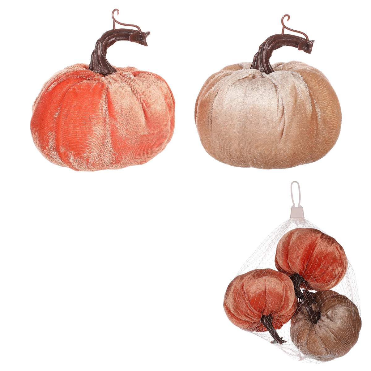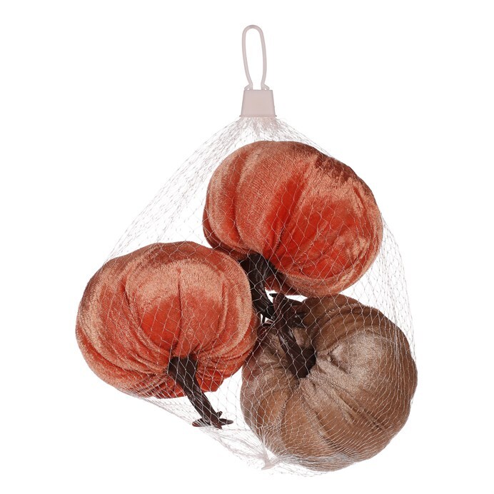 Umělé dýně potažené látkou s hebkým povrchem jsou skvělým podzimním doplňkem pro výzdobu jakéhokoli interiéru. Balené jsou po 3 kusech v síťce, všechny ve stejných velikostech, ale 2 různých odstínech (1x krémové a 2x oranžové), a nabízejí nekonečné možnosti aranžování. S jejich všestranností a příjemným vzhledem jsou ideální pro vytvoření hřejivé podzimní atmosféry. Nejen, že tyto tykvovité plody dobře vypadají, ale navíc jsou velmi příjemné na dotek. Můžete je snadno kombinovat s dalšími ozdobami dle fantazie a schopností, tak aby zrovna ta vaše výzdoba byla jedinečná a originální. S jejich trvanlivostí se nemusíte bát, že by se zkazily, a můžete je používat opakovaně i v dalších sezónách.