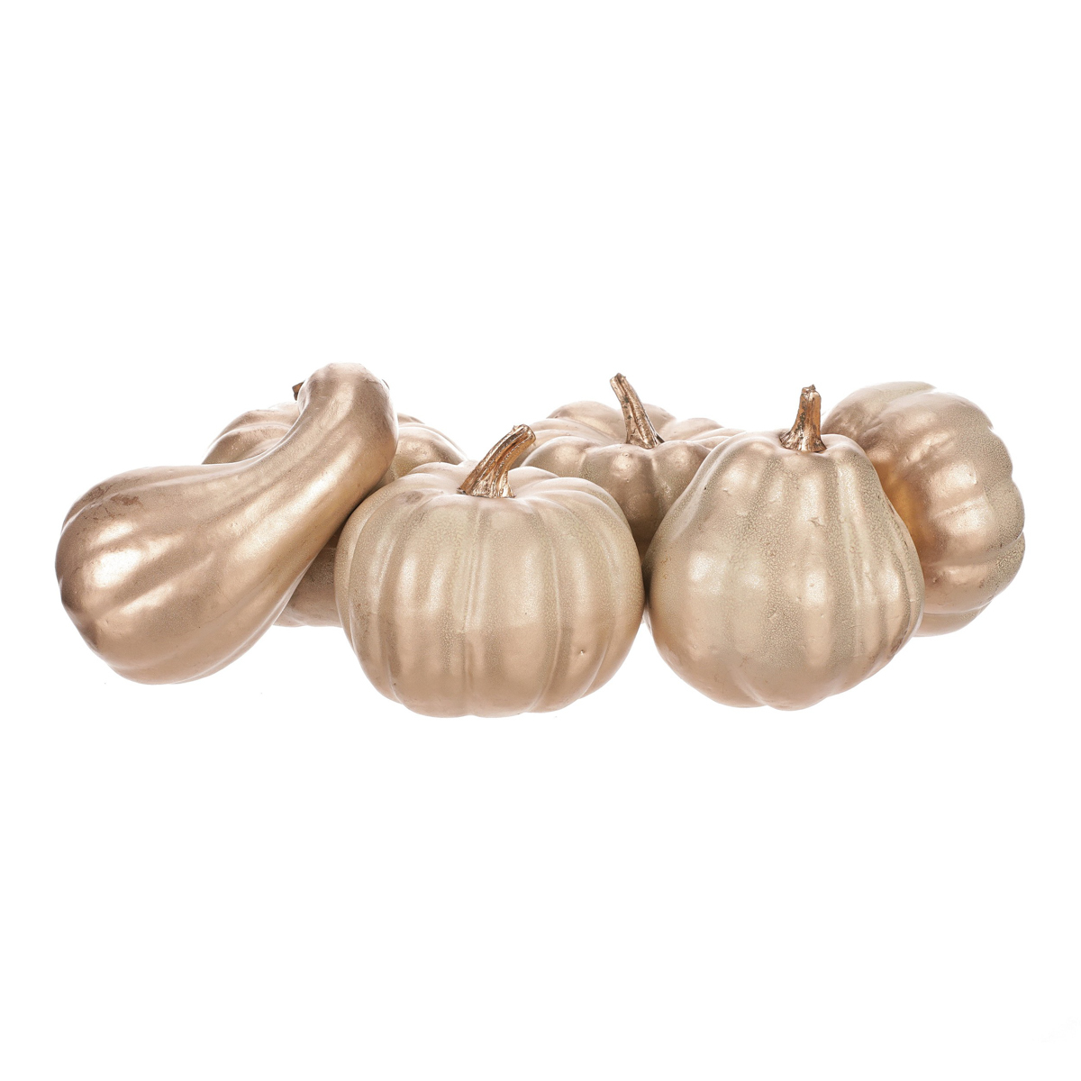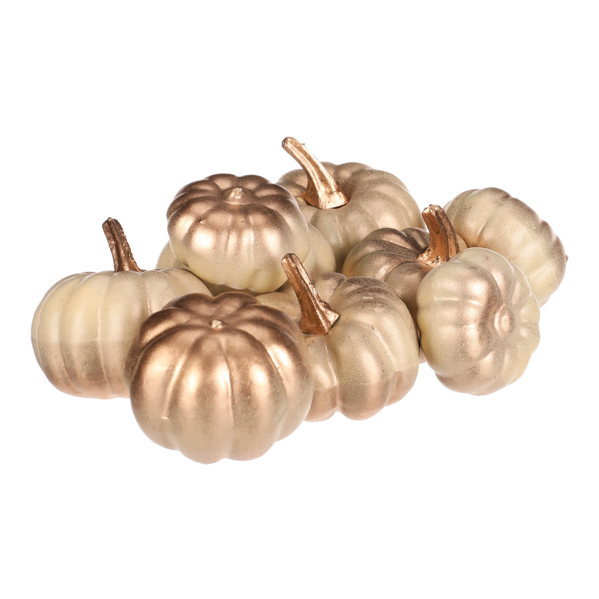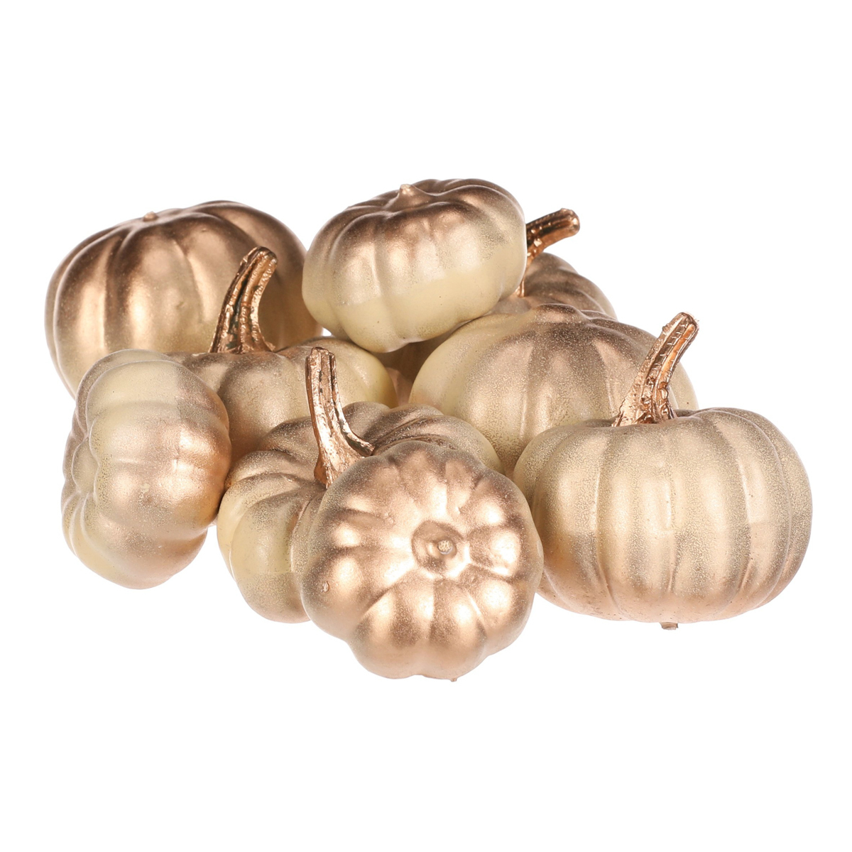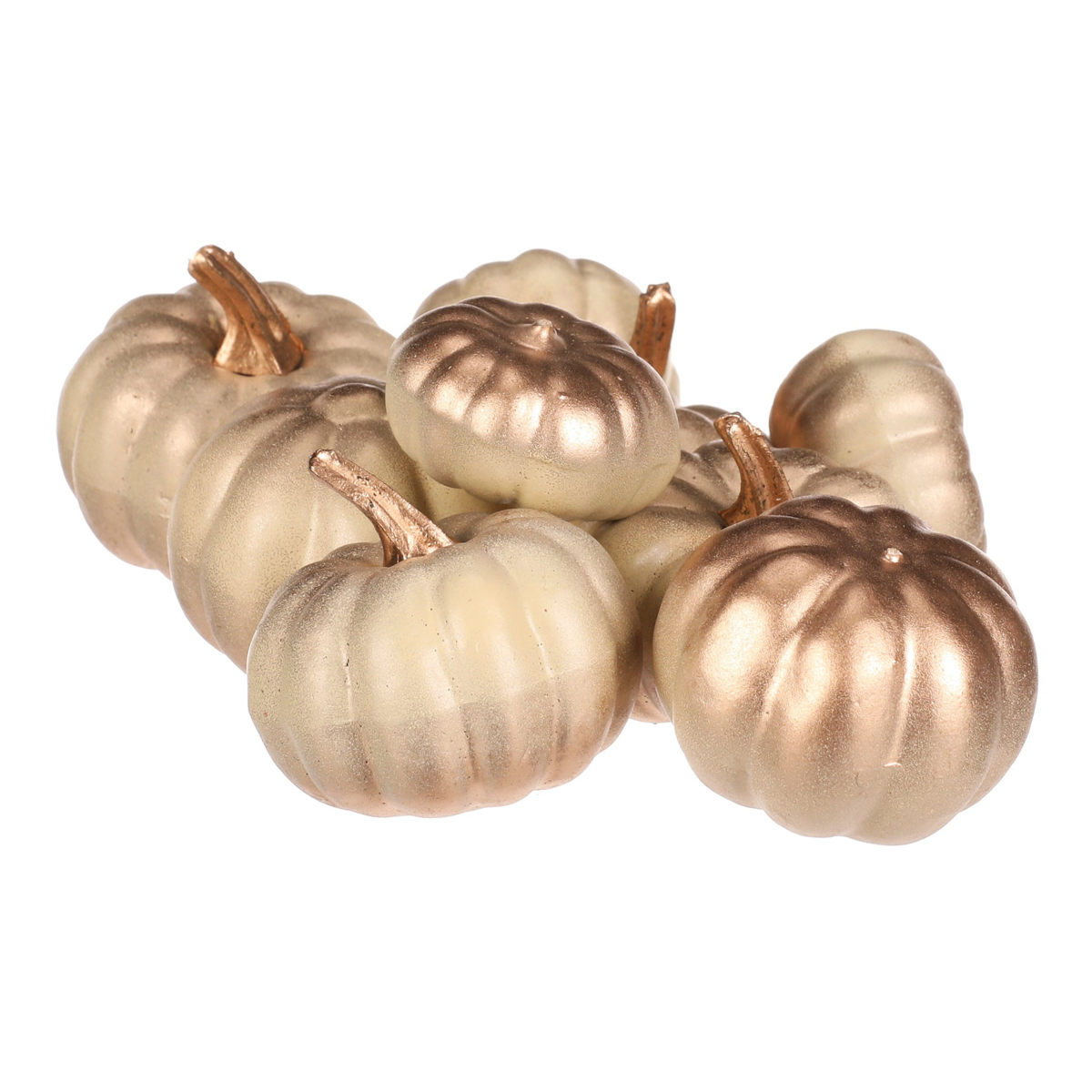 Naše plastové dýně díky svému realistickému vzhledu a pevné struktuře, se stanou důležitým ozdobným prvkem vašich podzimních kreativních nápadů. Balení obsahuje celkem 9 kusů, ve kterém najdete plody různých velikostí, všechny ve zlaté, až béžové barvě. Díky tomu je můžete hravě kombinovat s dalšími plody, přízdobami či například květinami. Tyto plastové dýně se nikdy nezkazí, což z nich činí ideální volbu pro trvalé nebo opakované použití, bez nutnosti péče a obav, že by časem ztratily kousek ze své krásy.