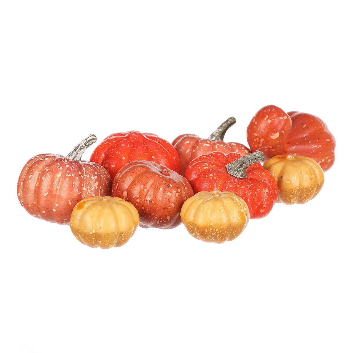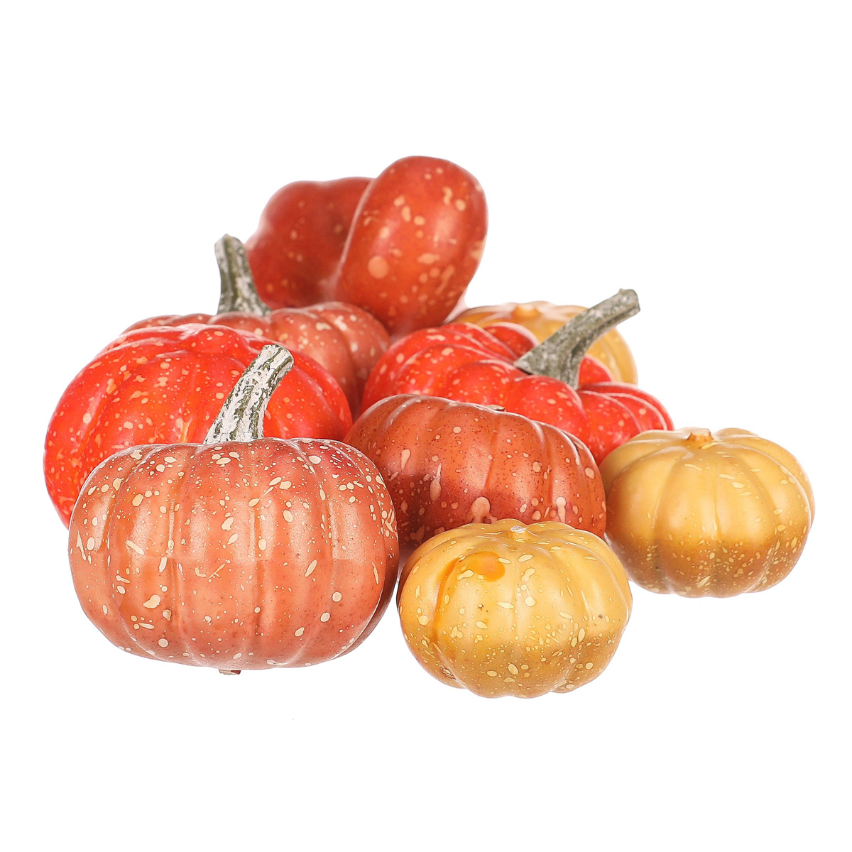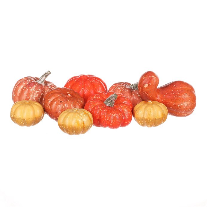 Objevte výhody všestrannosti těchto umělých plastových dýní různých tvarů, v odstínech žluté, oranžové a cihlově červené. Jedno balení obsahuje celkem 9 ks a využití mají zejména pro podzimní výzdobu. Tyto tykvovité plody jsou jedním ze symbolů úžasného ročního období, kdy sklízíme úrodu a všechno se ladí do teplých barev před příchodem zimy. Velká výhoda této dekorace spočívá v tom, že se nikdy nezkazí a vydrží vám navěky. Nabízí se kombinace s jinými plody, listím, květinami a dalšími podzimními ozdobami, čímž můžete docílit skutečně jedinečné a osobité výzdoby.