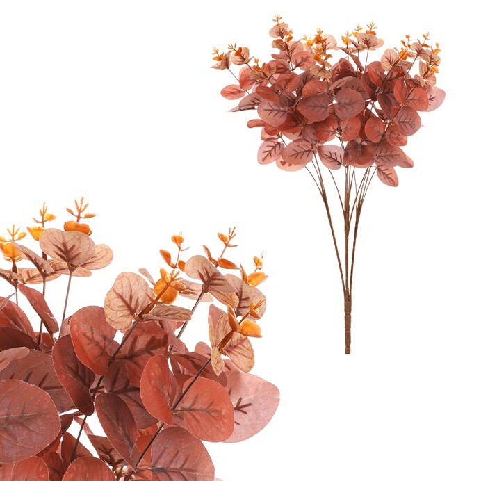 Oživte svůj prostor použitím umělého trsu eukalyptu ve světle hnědém provedení. Tento elegantní kousek přináší do vašeho interiéru nejen nevšední odstíny, ale také estetický prvek příjemný na pohled. Umístěte ho do vázy nebo začleňte do svých dekoračních projektů. Možností využití je skutečně bezpočet, a záleží jen na fantazii a dekoračních schopnostech každého z nás, jak s ním naložíme. S nízkým úsilím a dlouhotrvající krásou je tato umělá dekorace ideální pro každý prostor, a to bez starostí a nutnosti zvláštní péče.