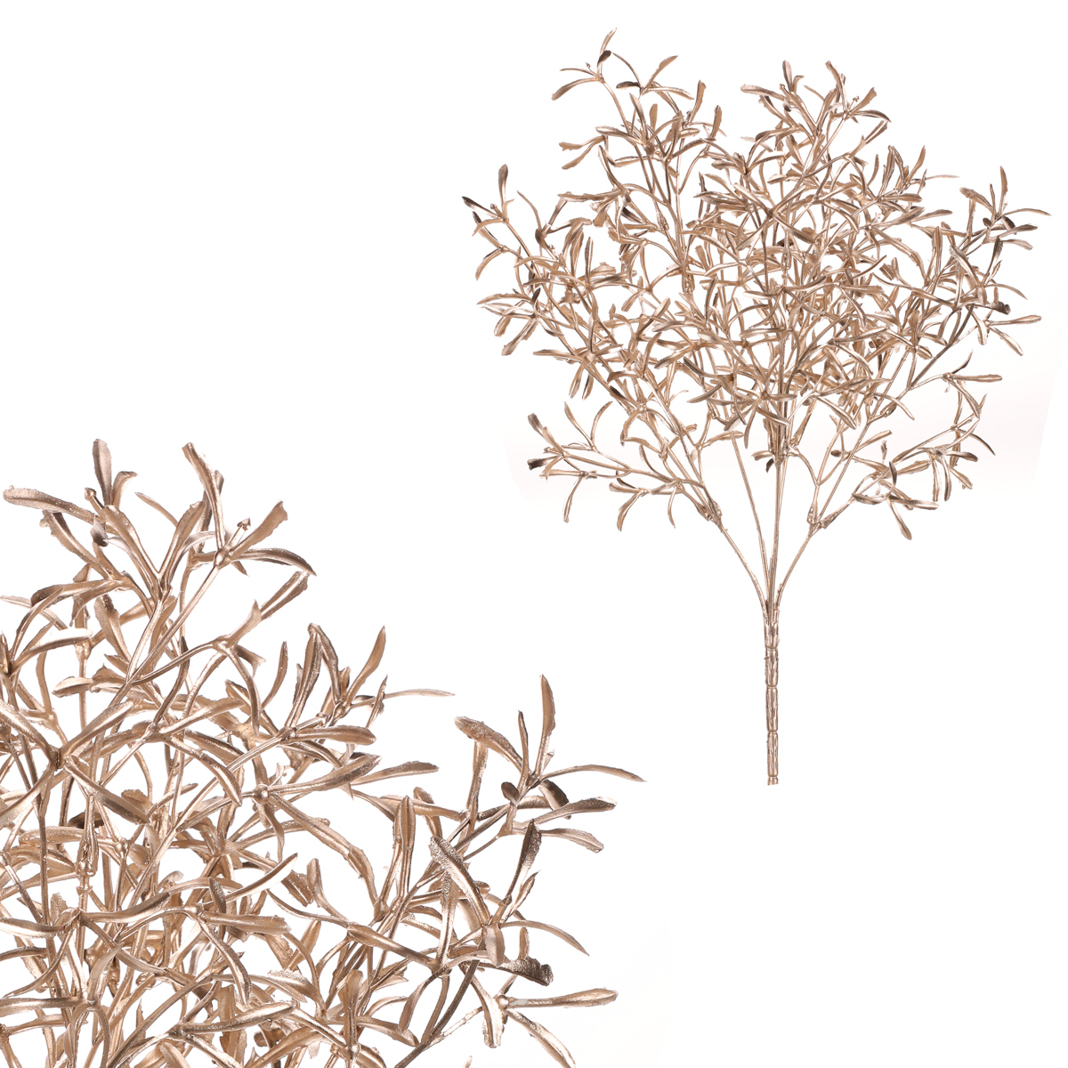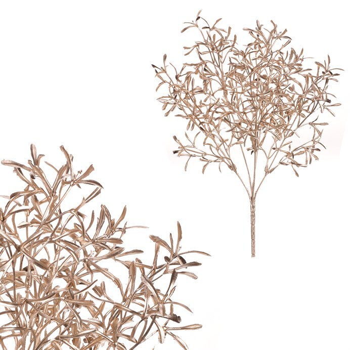 Vytvořte si kouzelnou vánoční atmosféru s naším umělým jmelím, zdobeným jemnými lístky. Jeho měděná barva a elegantní lístky přinesou do vašeho domova sváteční odstín, který podtrhne kouzlo vánoční atmosféry. Tato umělá rostlinná přízdoba na rozdíl od skutečné vydrží natrvalo, takže se nemusíte obávat, že by postupem času uvadala a opadávaly ji lístečky. Bude vám k dispozici pro mnoho dalších Vánoc, ať už si ji umístíte kamkoli ve vašem domě. Užijte si krásu vánočního období bez starostí a o to více relaxujte a odpočívejte v obležení krásných dekorací, jakou je i tento trs jmelí.