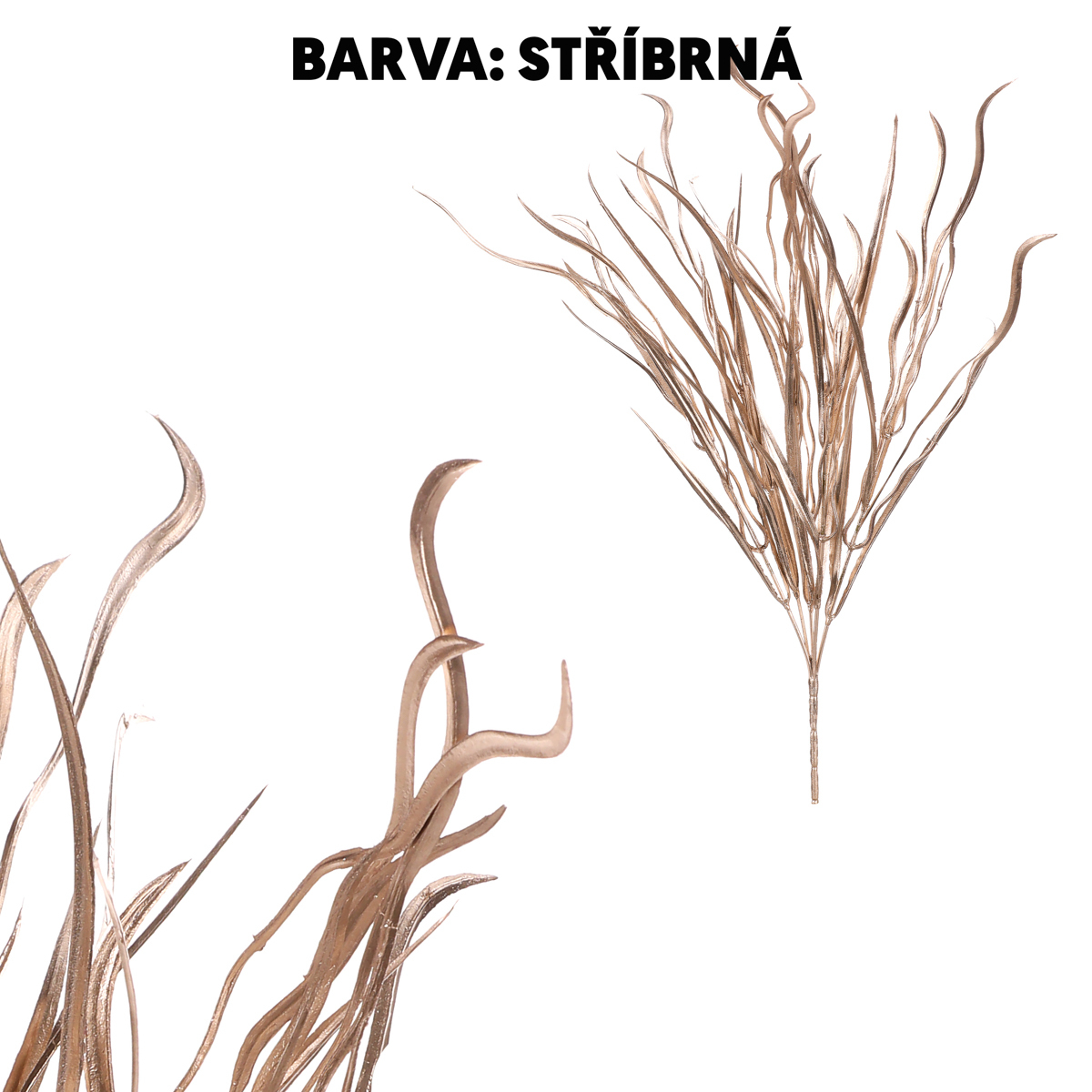 Oživte své prostředí s naším umělým trsem trávy ve sváteční stříbrné barvě. Tráva je oblíbeným prvkem pro tvorbu dekorací a tento umělý trs je skvělou volbou pro vaše kreativní nápady všeho druhu. Takto zbarvená je vhodná zejména pro vánočním výzdobu. Díky své trvanlivosti vydrží ve stejné kráse prakticky na věky, a byť je umělý, vypadá fantasticky. Můžete ho jednoduše kombinovat se stejně či odlišně zbarvenými travinami, či jinými rostlinnými přízdobami. Traviny jsou výborným základem i pro širokou paletu druhů květin a jiných dekorativních prvků. Užívejte si nikdy nekončící krásu této dekorace, kterou můžete využívat ve stejné míře i v dalších letech.