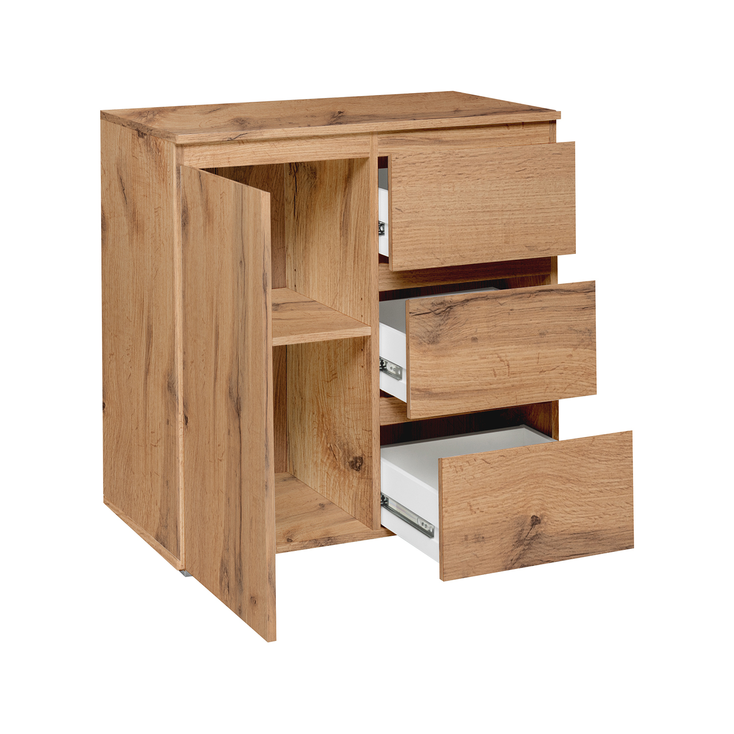 barevné provedení zlatý dub 1 dveře, 1 police, 3 zásuvky s kovovými pojezdy