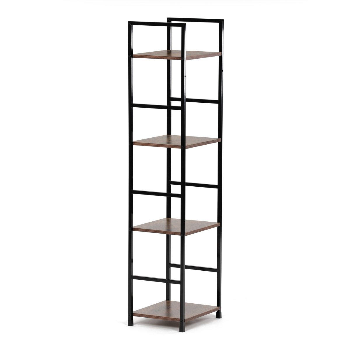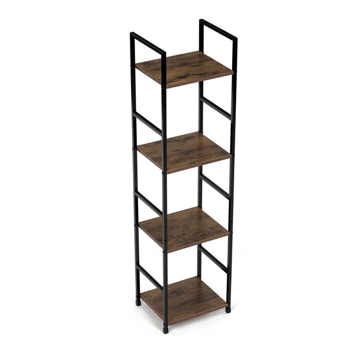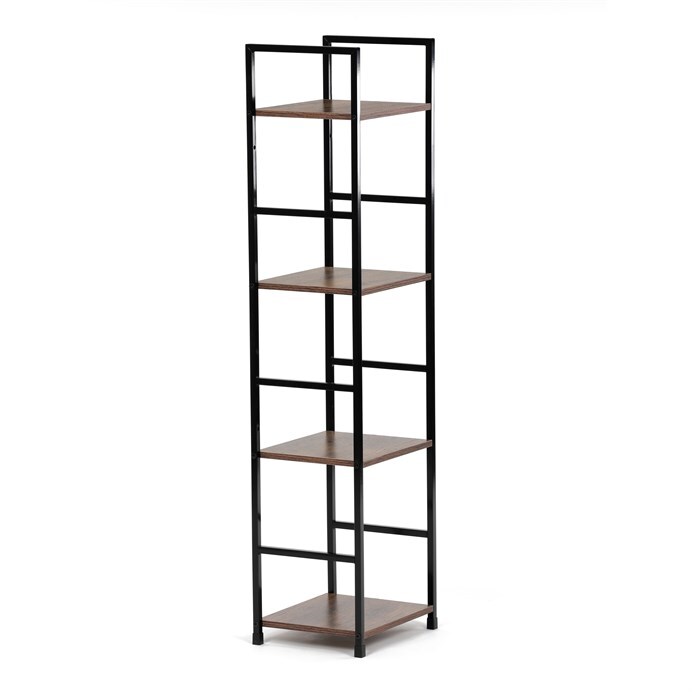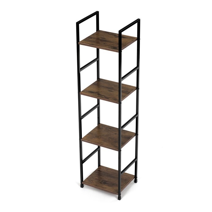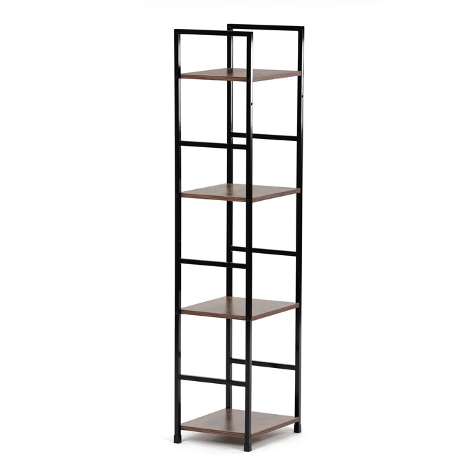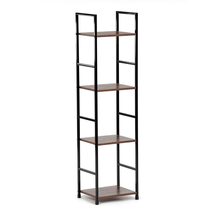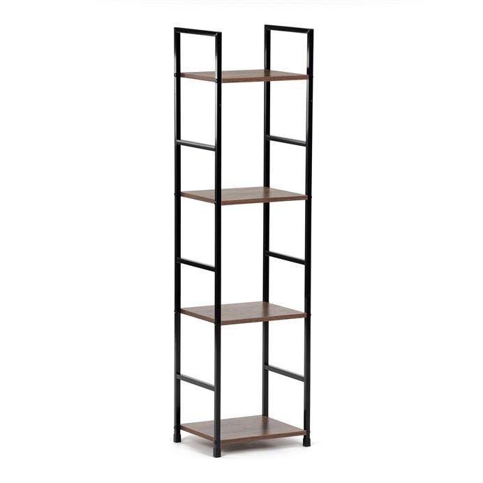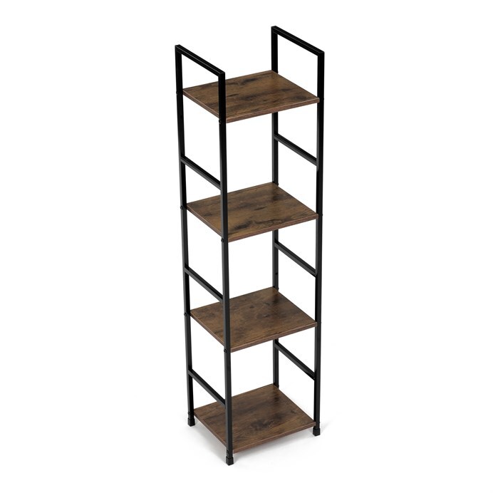 Představujeme vám praktický čtyrpatrový regál značky Autronic v industriálním stylu. Tento elegantní kousek v hnědé barvě kombinuje pevný kovový rám s deskami z MDF s dekorem starého dřeva. Jeho kompaktní rozměry umožňují snadné umístění do každého obývacího pokoje, kde poskytne dostatek prostoru pro vaše dekorace, knihy či další drobnosti.
