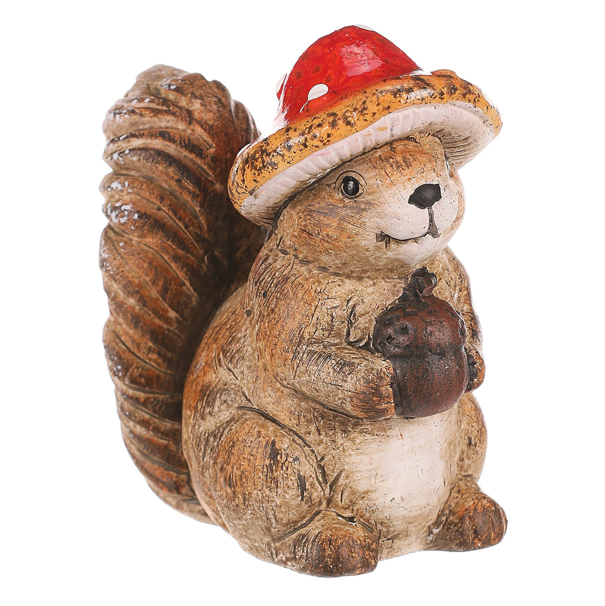 Zahalte svůj prostor do podzimních barev s naší roztomilou keramickou soškou veverky. S hnědou srstí a čepičkou z červené mochomůrky, držící v pacičkách žalud, přináší tato figurka do vašeho domova či zahrady neodolatelný dotek přírody. Jako ideální podzimní ozdoba je vhodná pro umístění kamkoliv v interiéru až po venkovní prostory. Nechte ji zdobit váš okenní parapet, stůl na terase nebo postavte na viditelné místo v obývacím pokoji. S touto roztomilou veverkou připravíte svůj oblíbený prostor na podzimní období plné radosti, hojnosti a barevných podívaných.