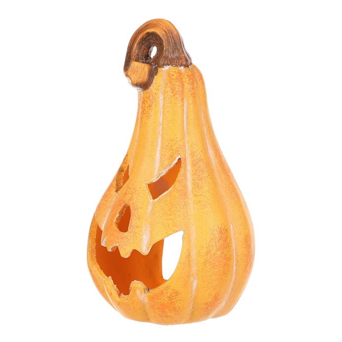 Vytvořte si nezapomenutelnou podzimní atmosféru s naší žlutou keramickou dýní ve tvaru hrušky s vyřezaným obličejem. Tato nezaměnitelná podzimní dekorace je ideální pro oslavy Halloweenu, nebo prostě jen pro přidání zajímavého prvku do vašeho domova nebo venkovního prostoru. Dýně ve tvaru hrušky dodává této dekoraci unikátní vzhled, který se snadno začlení do vaší podzimní výzdoby. Dýně je dutá a uvnitř najdete prostor na vložení čajové či LED svíčky, což vytvoří za dlouhých podzimních večerů, působivý světelný efekt. Výhodou je, že tato keramická napodobenina tykvovitého plodu, se nikdy nezkazí a tím pádem vám vydrží prakticky na věky.