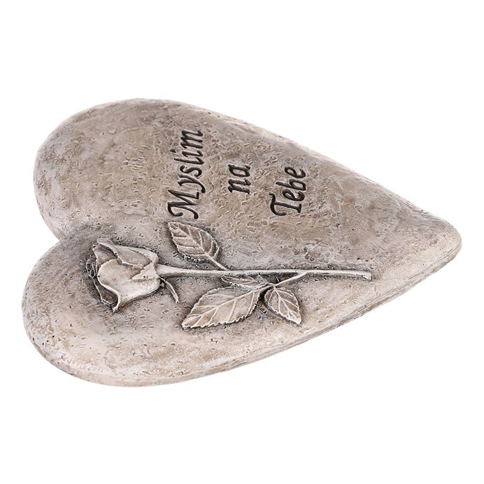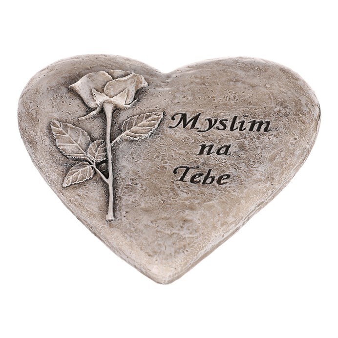 Vyzdobte si své vzpomínkové místo naší závěsnou ozdobou, v podobě polyresinového srdce s růžemi a dojemným nápisem „Myslím na Tebe“. Tato smuteční dekorace v šedé barvě v sobě skrývá klid a pietní vzpomínky. Srdce s růžemi evokuje symboliku lásky a něhy, zatímco dojemný nápis představuje spojení s nezapomenutelnými chvílemi. Tato závěsná ozdoba s elegancí vytváří pravou pietní atmosféru. Umístěním na dobře zvolené místo, prokazujete trvající úctu k památce milované osoby.