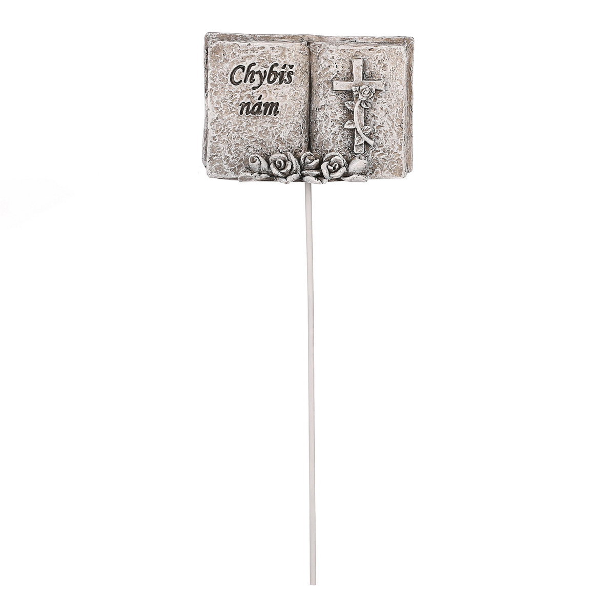 Začleňte náš malý pietní zápich v podobě knížky s křížem, růžemi a vzpomínkovým nápisem mezi ostatní dekorace podobného typu. Zabere minimum místa, ale zároveň působí jako výrazný vztyčný prvek, přinášející do prostoru dojemnou atmosféru plnou krásných vzpomínek. Jeho diskrétní velikost a elegantní design ho činí ideálním doplňkem pro uctění památky milované osoby i na místech s omezenými prostory. Umístěte tento pietní zápich z polyresinu na vhodné místo jako jemný a zároveň jasný symbol respektu a lásky.
