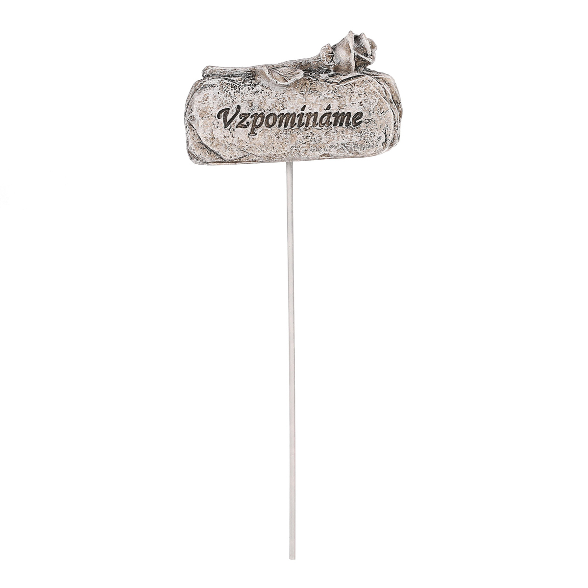 Přiveďte do svého pietního prostoru klid a vzpomínky s naším zápichem, který představuje pietní dekoraci s růží ležící na kameni. Nápis „Vzpomínáme“ dodává této jemné dekoraci hlubší význam, zatímco růže na kameni evokuje pietní atmosféru a citlivost. Tento zápich se stává nikdy nekončícím projevem úcty a lásky k památce milované osoby, a je ideálním prvkem pro trvalou vzpomínku.