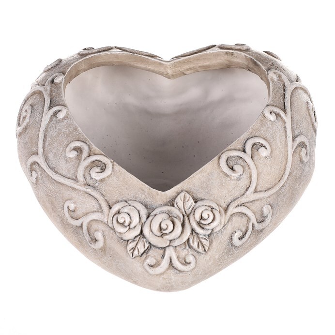 Oživte pietní prostor s naším květinovým obalem ve tvaru srdce zdobeným růžemi. Vyroben z polyresinu v elegantní šedé barvě, tento obal přináší do prostoru jemnou krásu a dojemnost. Jeho tvar srdce a růže zdůrazňují lásku a vzpomínky na milovanou osobu, přičemž zároveň slouží jako krásná dekorace pro vložení květin.