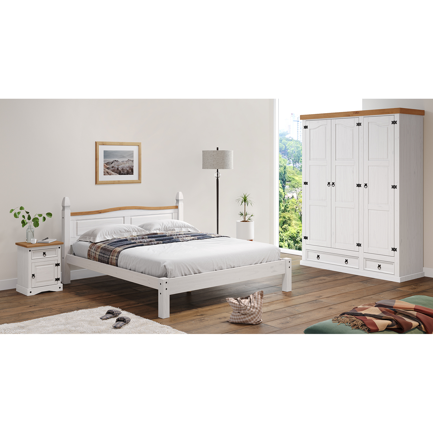 materiál masiv borovice voskovaná v bílém odstínu horní deska masiv borovice voskovaná v medovém odstínu součást sestavy Corona bílá