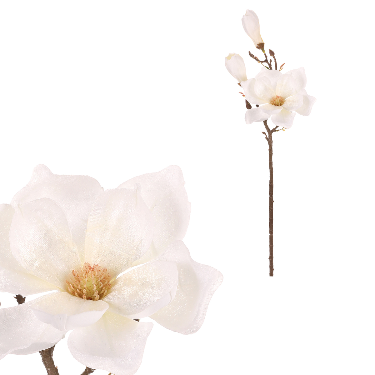 Květy magnolií patří mezi ty nejkrásnější, a my tu pro vás máme umělou řezanou variantu, která vám vydrží ve stejně kráse prakticky na věky. Existuje jich mnoho druhů, které se liší velikostí květů, zbarvením a tvarem okvětních lístků. Tato umělá větev s velkými, bílými květy, bude nádherně zdobit vaše oblíbená místa. Nemusíte se obávat o to, že by ztratila ze svého půvabu, protože prostě jako umělá, nikdy neopadá ani nezvadne.