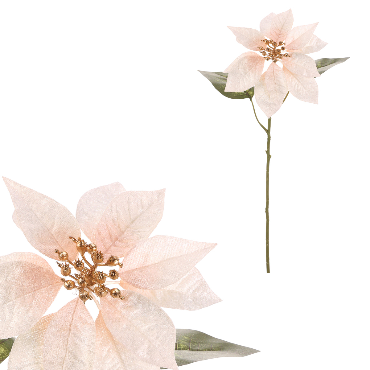 Oživte svůj vánoční interiér s našimi umělými vánočními růžemi. Tato oblíbená cizokrajná květina se stala ikonickým prvkem vánoční výzdoby, a s naší umělou řezanou variantou si ji můžete užít napořád. S elegantně zbarvenými okvětními lístky do krémového odstínu a pozlaceným středem, přináší do vašeho domova tu pravou vánoční atmosféru plnou elegance a stylu.