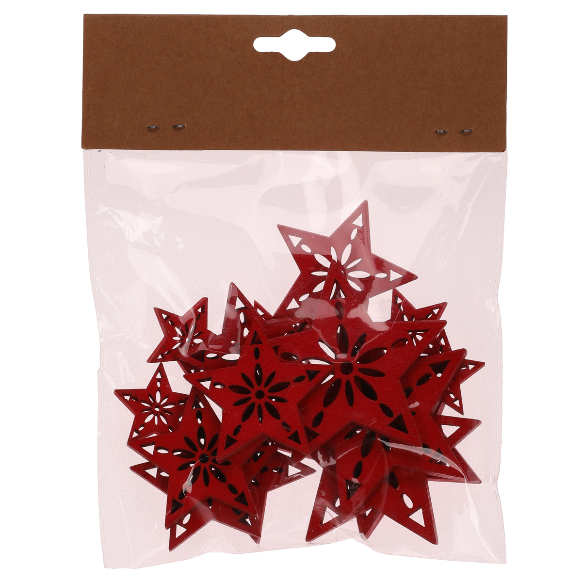Nechte naplno proniknout do svých oblíbených prostor pravou sváteční atmosféru, i díky dřevěným vánočním ozdobám ve tvaru hvězdiček. Jsou všechny v krásné červené barvě a balené po 18 kusech v sáčku, kde najdete mix tří různých velikostí. Je už jen na fantazii a dekorativních schopnostech každého z vás, jak s těmito ozdobami naloží. Každopádně jsou výborným základem pro tvorbu různorodých svátečních aranží, dotvářených vlastníma rukama.