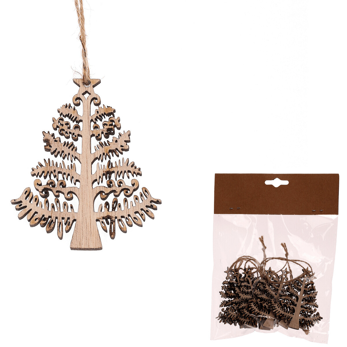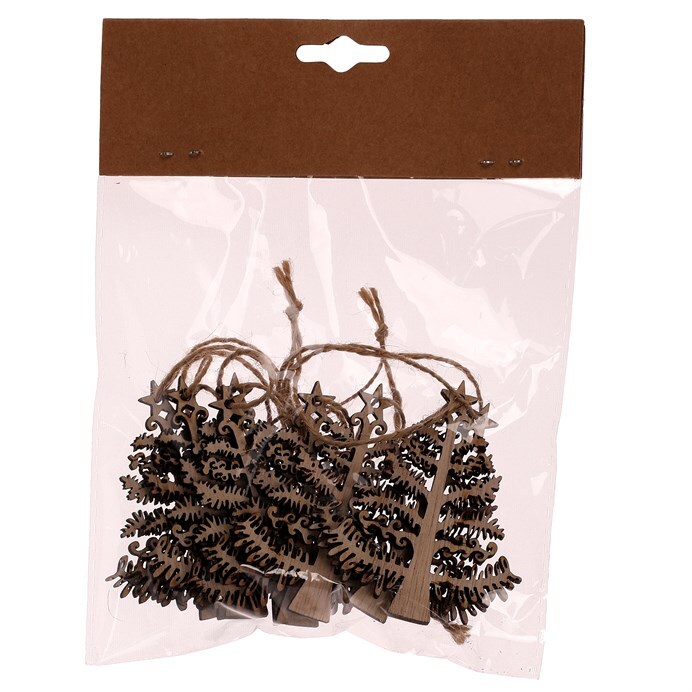 Zkrášlete si vánoční stromeček nebo jiné vhodné prostory s našimi dřevěnými vánočními ozdobami na pověšení ve tvaru stromků. Jsou všechny v přírodní barvě dřeva a balené po 8 kusech v sáčku, přičemž každý z nich je opatřen provázkem k okamžitému pověšení na místo určení.