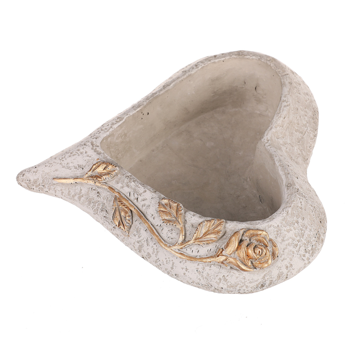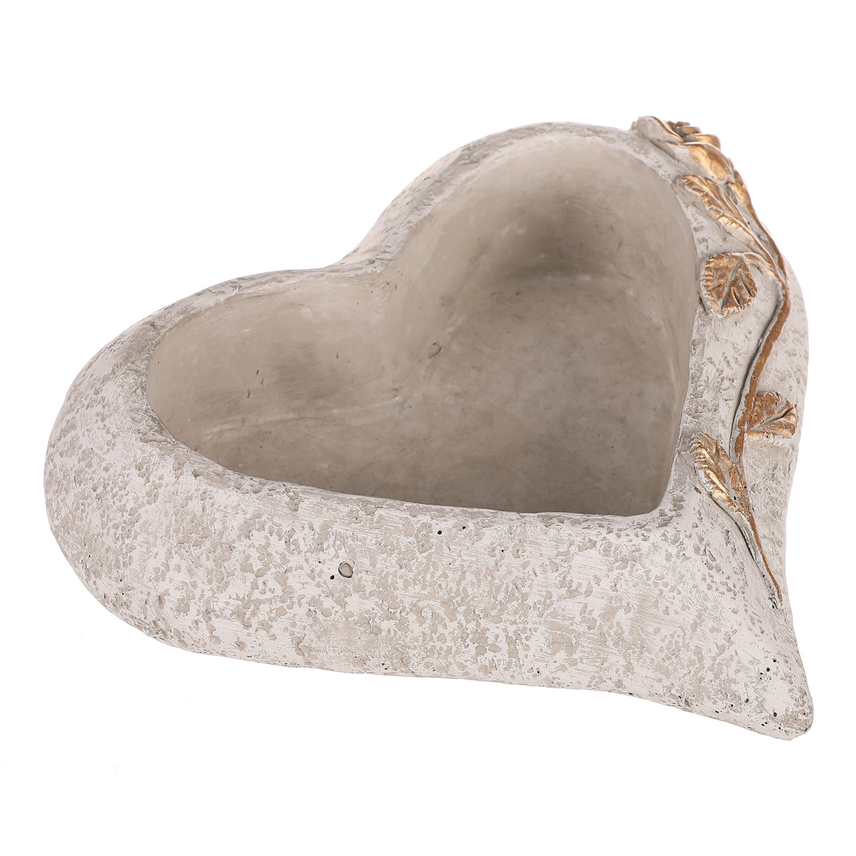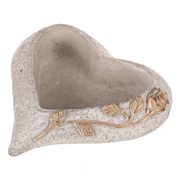Každé pietní místo si zaslouží svou zvláštní péči a náležitou výzdobu. Tento šedý betonový obal na květiny ve tvaru srdce s vyobrazenou zlatou růžičkou, bude výborným spojením esteticky hodnotné dekorace s praktickou funkcí. Jednoduše do něj umístíte rostlinky, které společně s ním vytvoří důstojnou výzdobu pro vzpomínkový prostor.