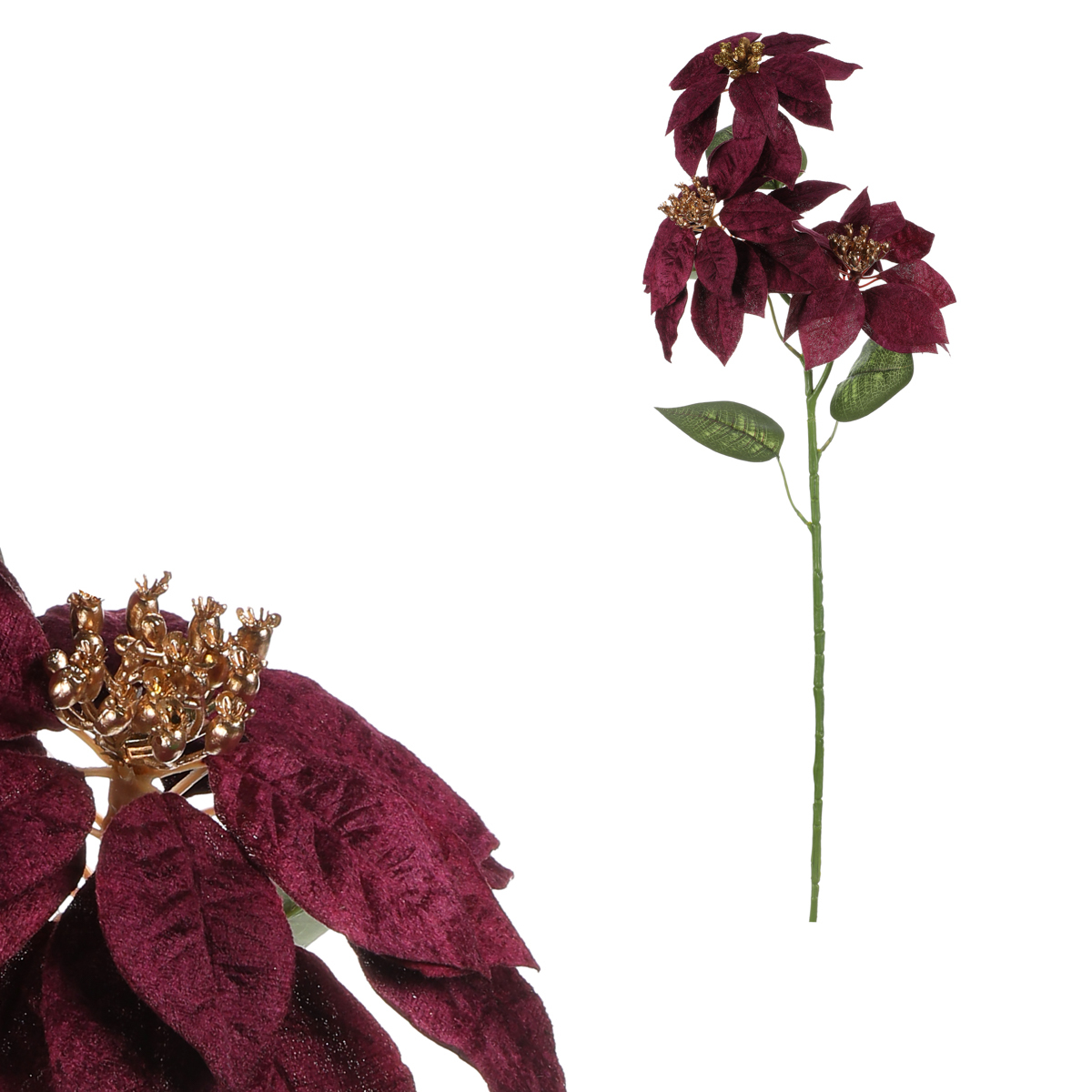 Oživte svůj vánoční interiér s našimi umělými vánočními růžemi. Tato oblíbená cizokrajná květina se stala ikonickým prvkem vánoční výzdoby, a s naší umělou řezanou variantou si ji můžete užít napořád. S nádherně sytým, fialovým zbarvením a pozlaceným středem, přináší do vašeho domova tu pravou vánoční atmosféru plnou elegance a stylu.