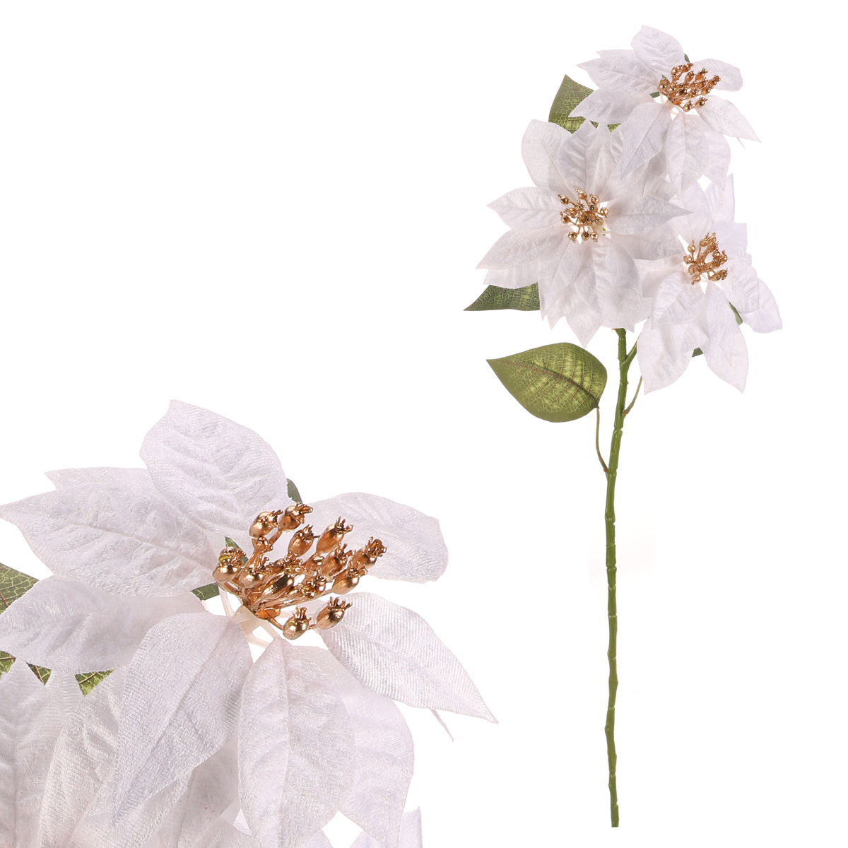 Oživte svůj vánoční interiér s našimi umělými vánočními růžemi. Tato oblíbená cizokrajná květina se stala ikonickým prvkem vánoční výzdoby, a s naší umělou řezanou variantou si ji můžete užít napořád. S elegantními, bíle zbarvenými okvětními lístky a pozlaceným středem, přináší do vašeho domova tu pravou vánoční atmosféru plnou elegance a stylu.