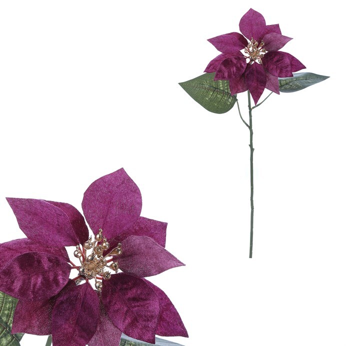 Oživte svůj vánoční interiér s našimi umělými vánočními růžemi. Tato oblíbená cizokrajná květina se stala ikonickým prvkem vánoční výzdoby, a s naší umělou řezanou variantou si ji můžete užít napořád. S nádherně sytými, fialovými okvětními lístky a pozlaceným středem, přináší do vašeho domova tu pravou vánoční atmosféru plnou elegance a stylu.
