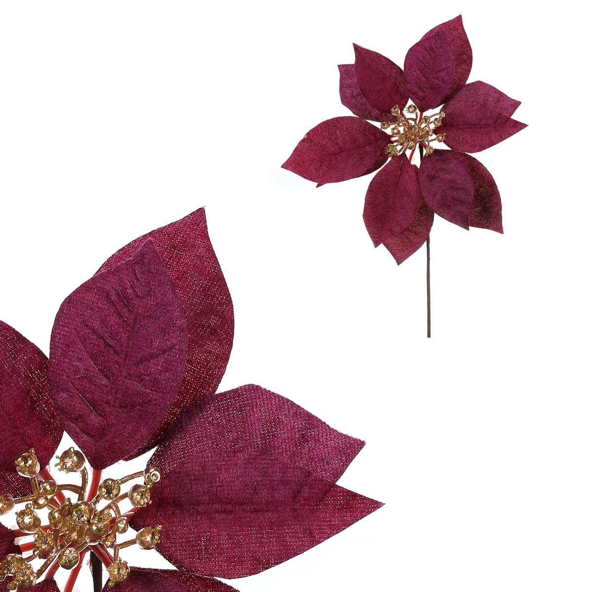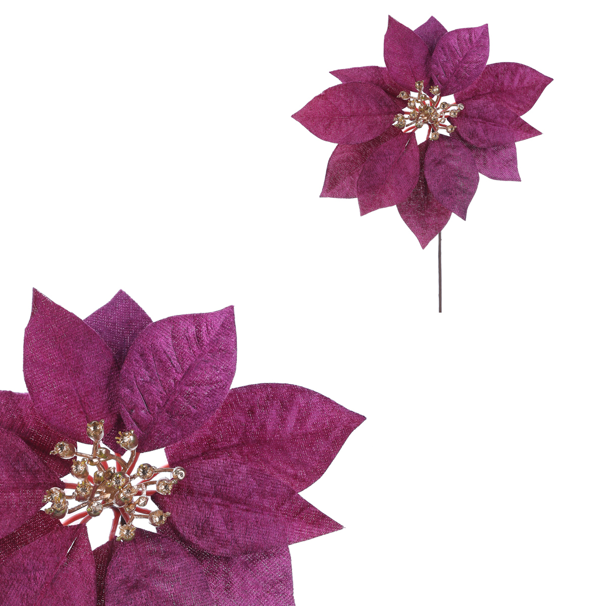 Květ vánoční růže v krásném fialovém provedení a s pozlaceným středem, bude skvělým základem pro vaši vánoční výzdobu. Tato cizokrajná rostlina se u nás čím dál tím více stává neodmyslitelným prvkem a symbolem Vánoc. Bohužel nám však většinou vydrží v plné kráse jen krátce. Máme tu však elegantní řešení v podobě této umělé varianty, která vypadá skvěle a poslouží vám pro výzdobu i v mnoha dalších letech, a to ve svěží kráse, jako byste si ji právě pořídili.