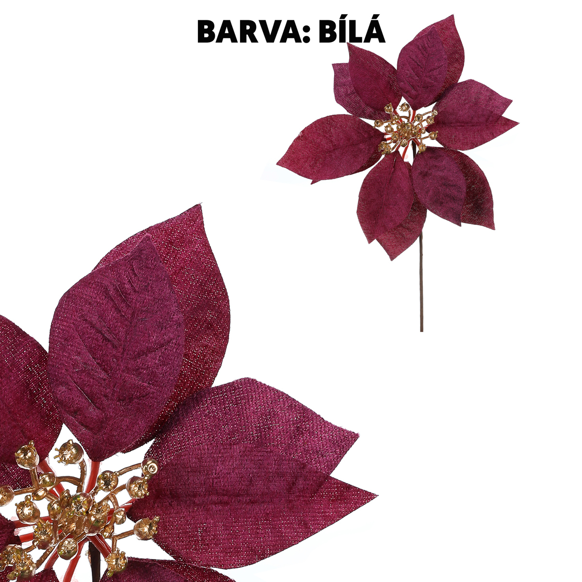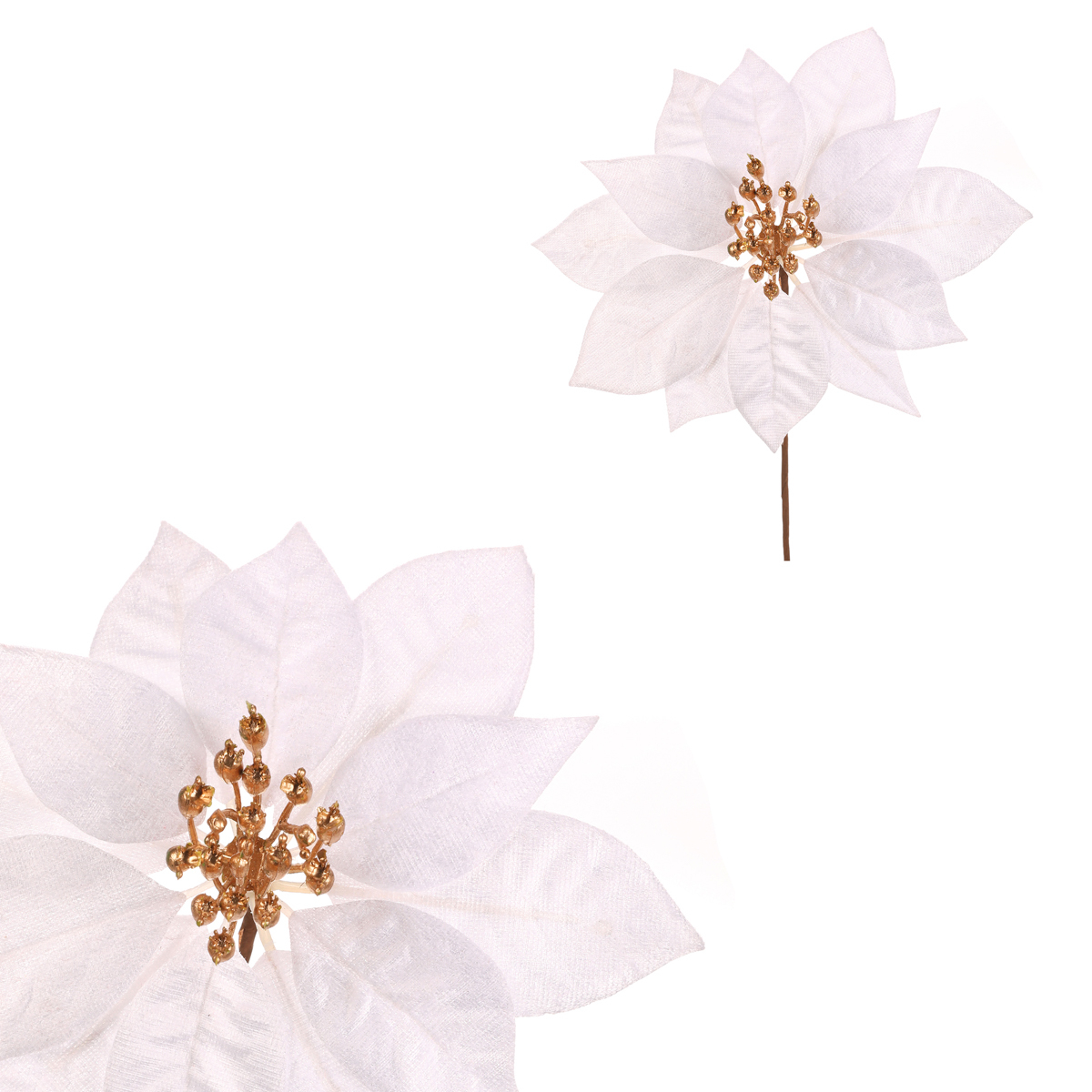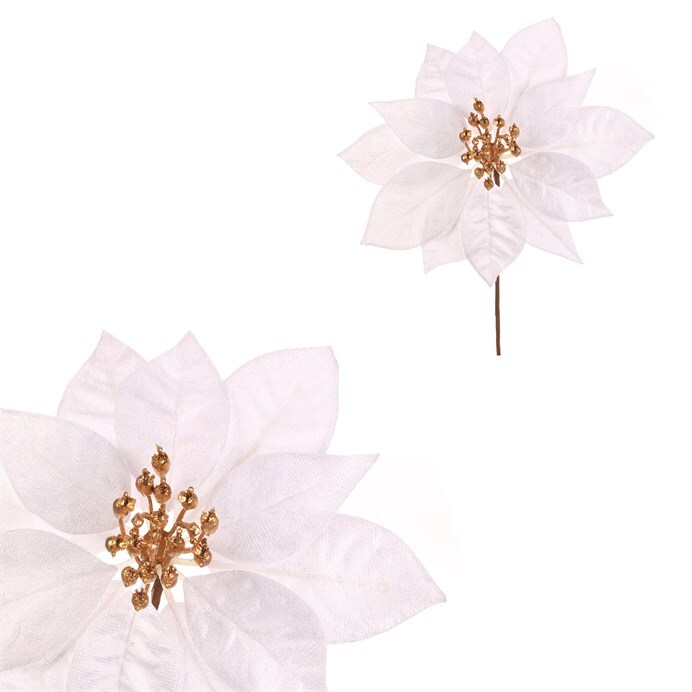 Květ vánoční růže v netradičním bílém provedení a s pozlaceným středem, bude skvělým základem pro vaši vánoční výzdobu. Tato cizokrajná rostlina se u nás čím dál tím více stává neodmyslitelným prvkem a symbolem Vánoc. Bohužel nám však většinou vydrží v plné kráse jen krátce. Máme tu však elegantní řešení v podobě této umělé varianty, která vypadá skvěle a poslouží vám pro výzdobu i v mnoha dalších letech, a to ve svěží kráse, jako byste si ji právě pořídili.