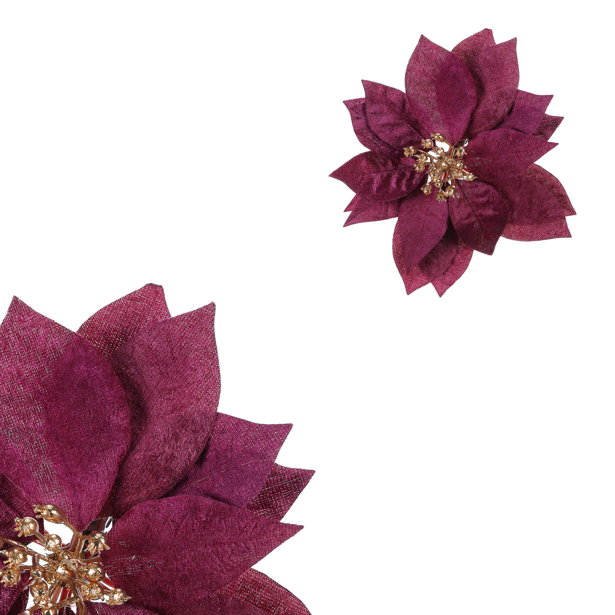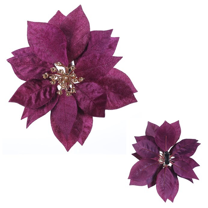 Květ vánoční růže v krásném fialovém provedení a s pozlaceným středem, bude skvělým základem pro vaši vánoční výzdobu. Tato cizokrajná rostlina se u nás čím dál tím více stává neodmyslitelným prvkem a symbolem Vánoc. Bohužel nám však většinou vydrží v plné kráse jen krátce. Máme tu však elegantní řešení v podobě této umělé varianty, která vypadá skvěle a poslouží vám pro výzdobu i v mnoha dalších letech, a to ve svěží kráse, jako byste si ji právě pořídili.