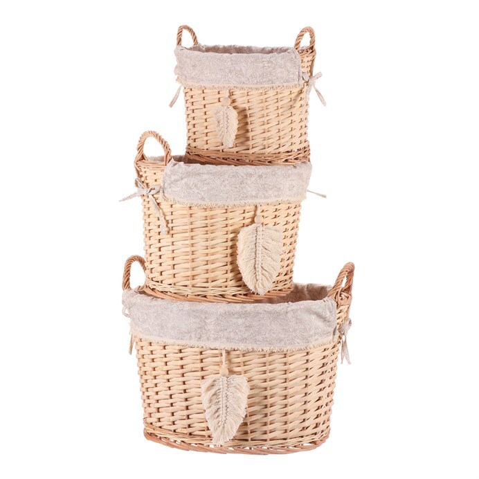 Udržujte pořádek snadno a efektivně s tímto elegantním kulatým proutěným košem v přírodní barvě. Sada tří velikostí se skvěle hodí do každé skříně nebo do regálu, přičemž ucha po stranách jsou praktická pro snadné přemístění koše i s obsahem. Vnitřní látka je lehce snímatelná, což usnadňuje její údržbu.