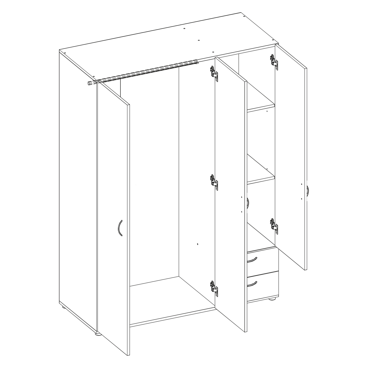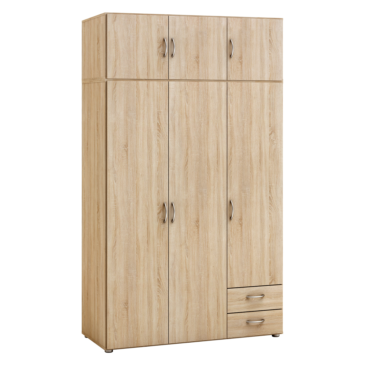 barevné provedení dub Sonoma prostor dělený v poměru 2:1 širší část šatní tyč, užší část 2 variabilní police, 2 zásuvky ke skříni je možno dokoupit nástavec IN405069