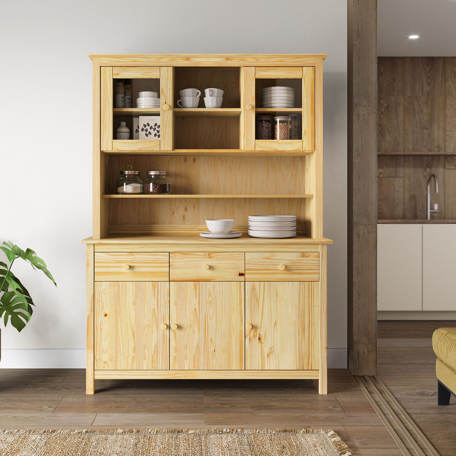 materiál masiv borovice, lakované provedení dvoje prosklená dvířka doplněk příborníku TORINO 8062