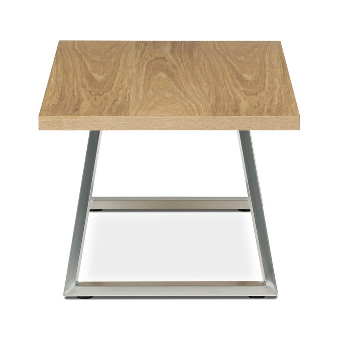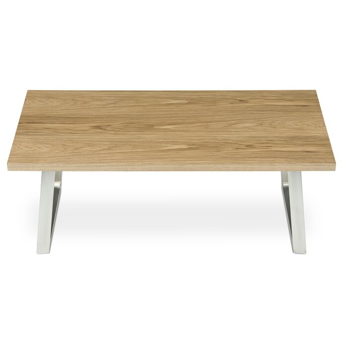 Konferenční stůl značky Autronic v moderním designu, který skvěle zapadne do každého interiéru. Jeho deska je vyrobena z kvalitní dýhy s dekorem dubu, což dodává stolu elegantní a přírodní vzhled. Nohy jsou vyrobeny z broušeného nerezu. Stolek je ideální pro každodenní posezení v rodinném kruhu nebo s přáteli.