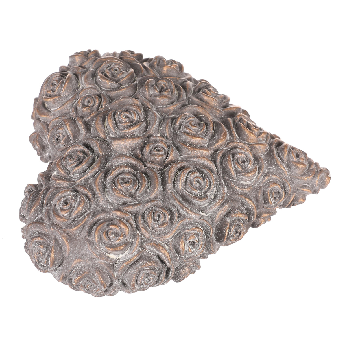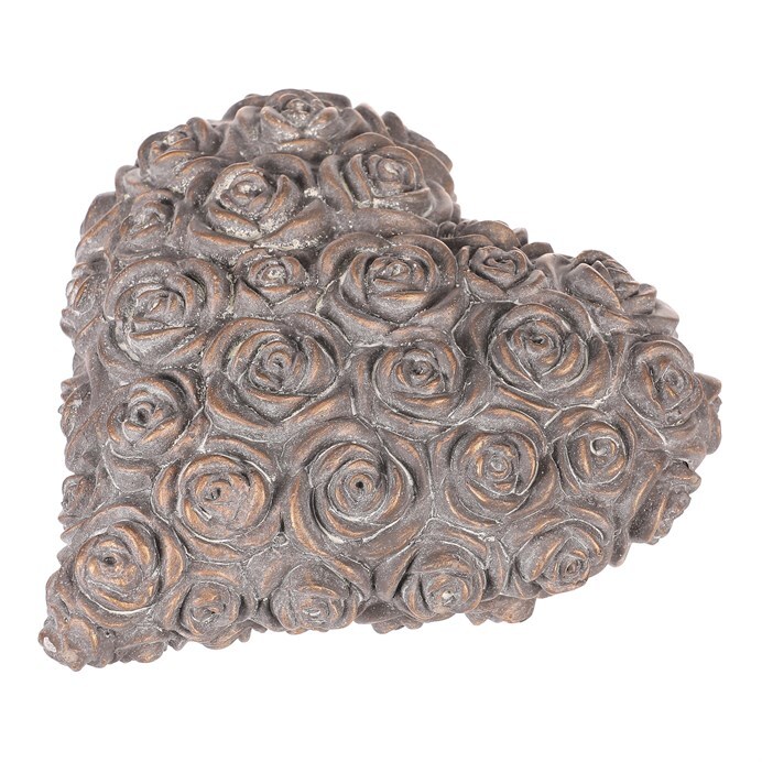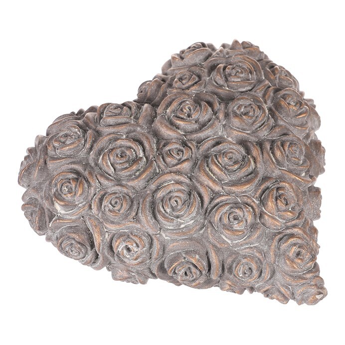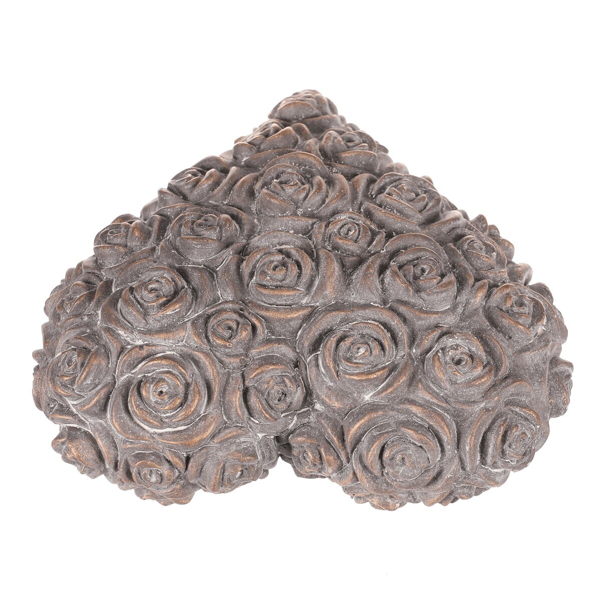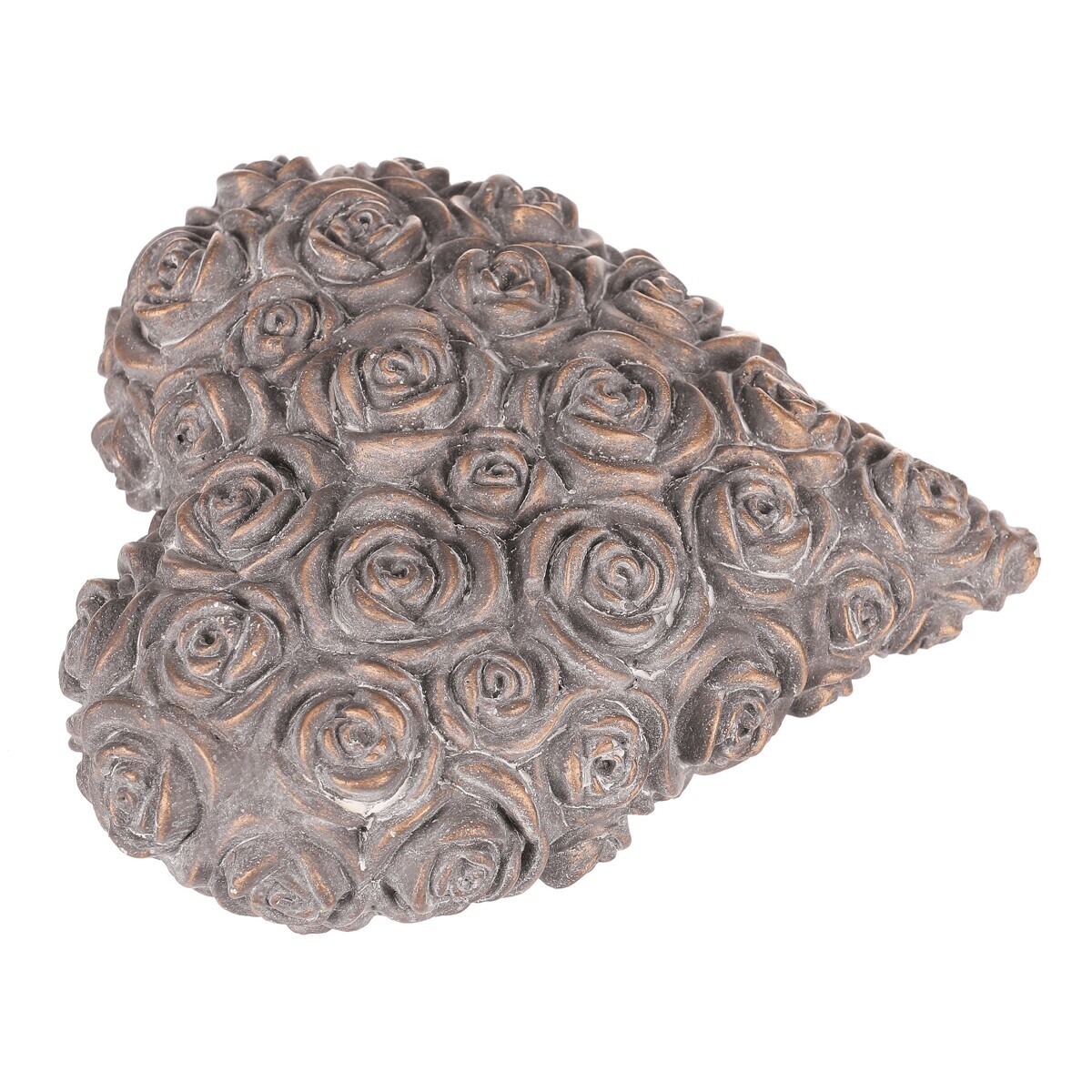 Tato šedá betonová dekorace ve tvaru srdce, zdobená jemným vzorem růží, představuje symbol lásky a vzpomínky. Ideální jako pietní ozdoba pro klidné a důstojné prostory, dodává místu jemnou eleganci a poklidnou atmosféru.