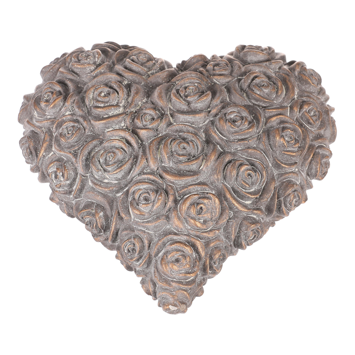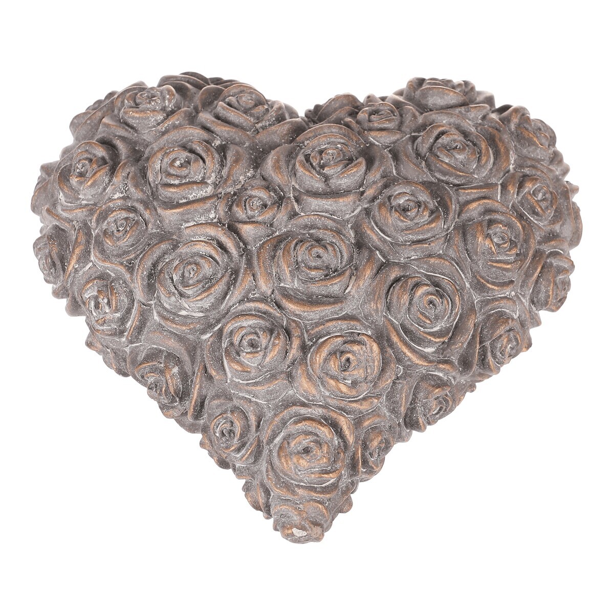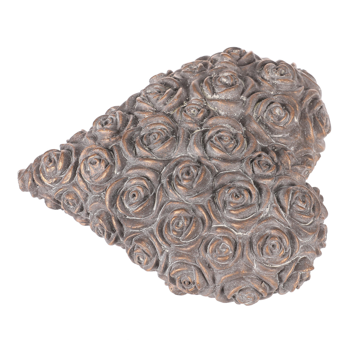 Tato šedá betonová dekorace ve tvaru srdce, zdobená jemným vzorem růží, představuje symbol lásky a vzpomínky. Ideální jako pietní ozdoba pro klidné a důstojné prostory, dodává místu jemnou eleganci a poklidnou atmosféru.