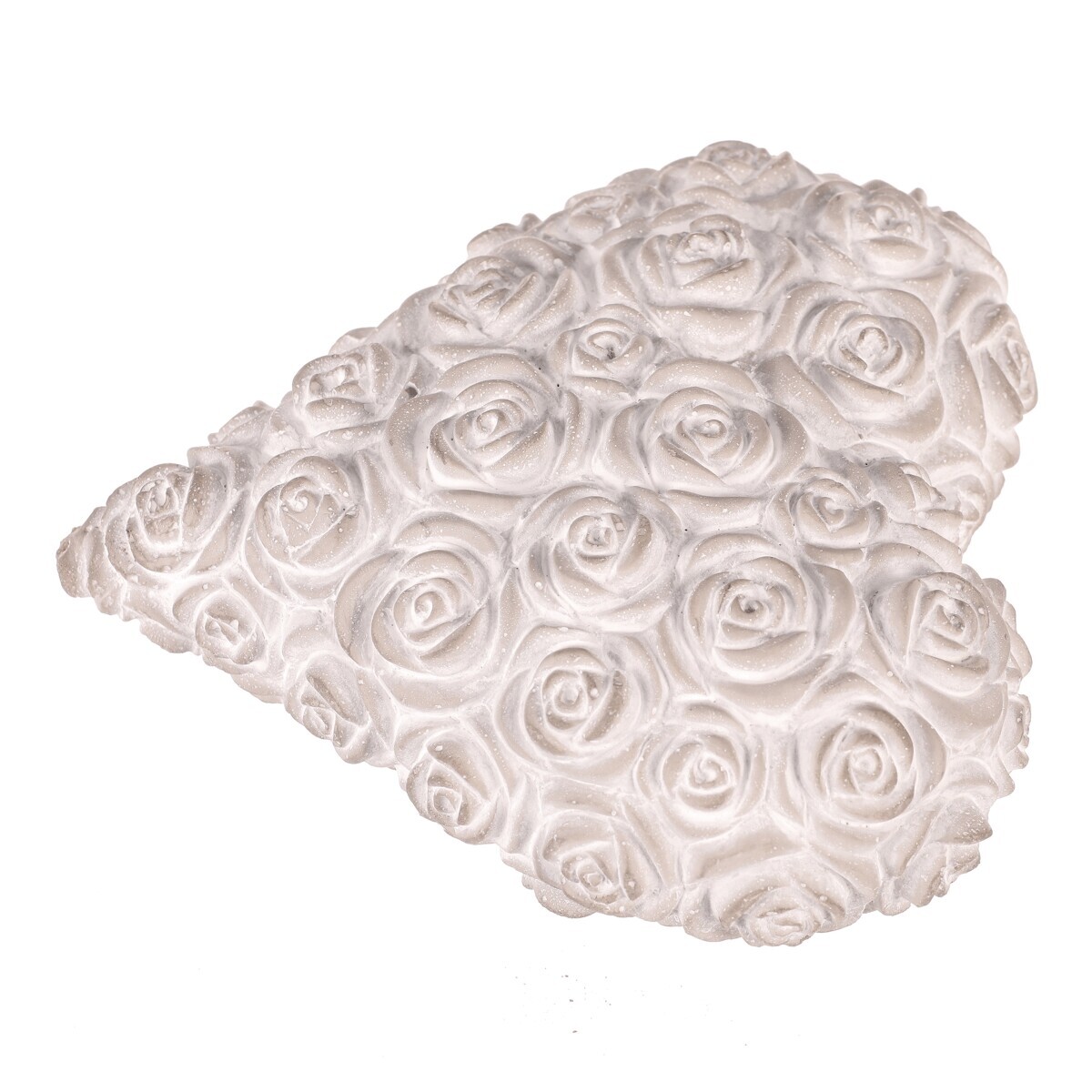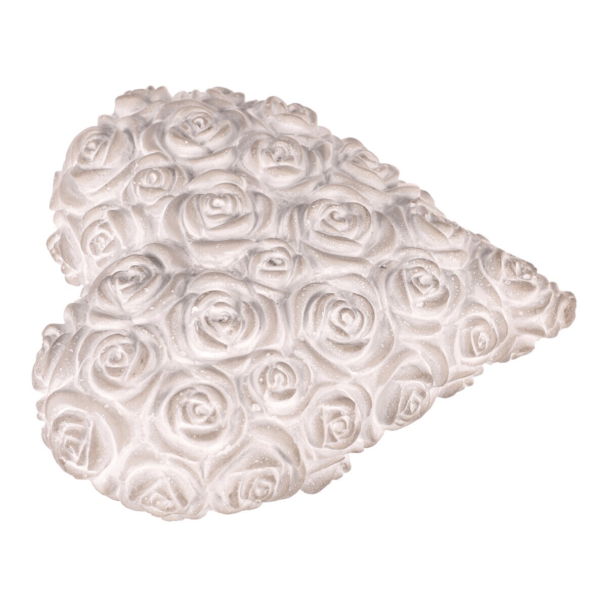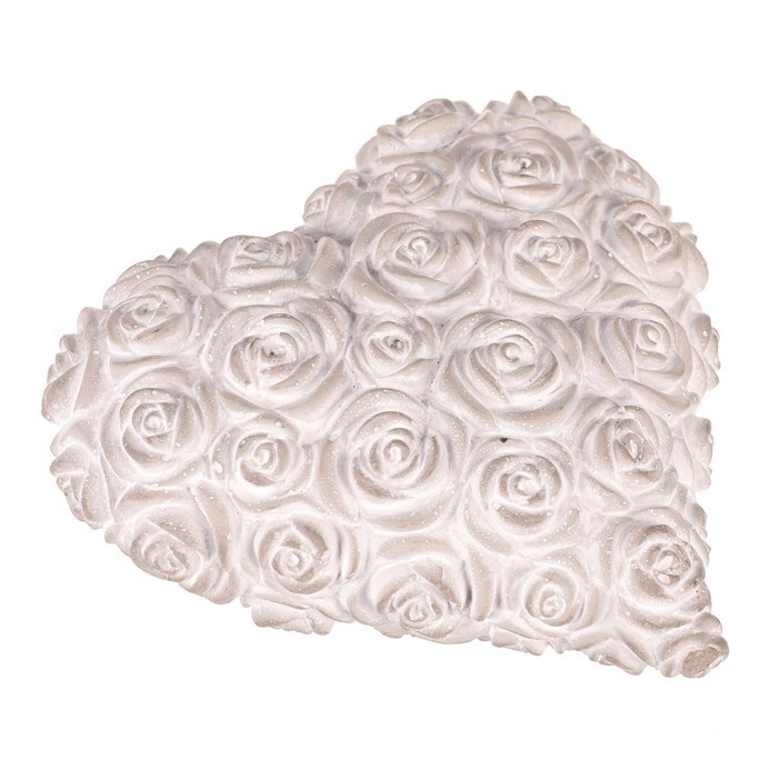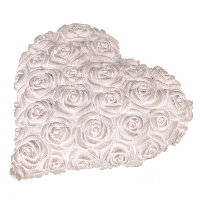 Tato světle šedá betonová dekorace ve tvaru srdce s reliéfem růží je navržena jako symbol úcty a vzpomínek. Jemné zpracování a neutrální odstín dodávají místu klidnou a důstojnou atmosféru, ideální pro pietní a vzpomínkové prostory.