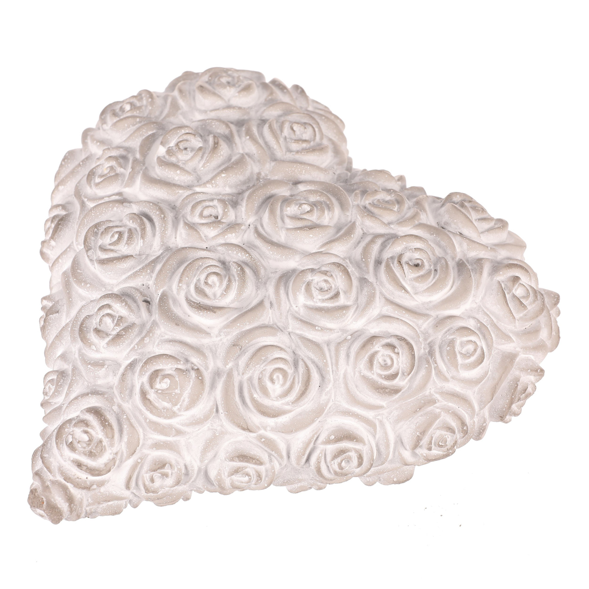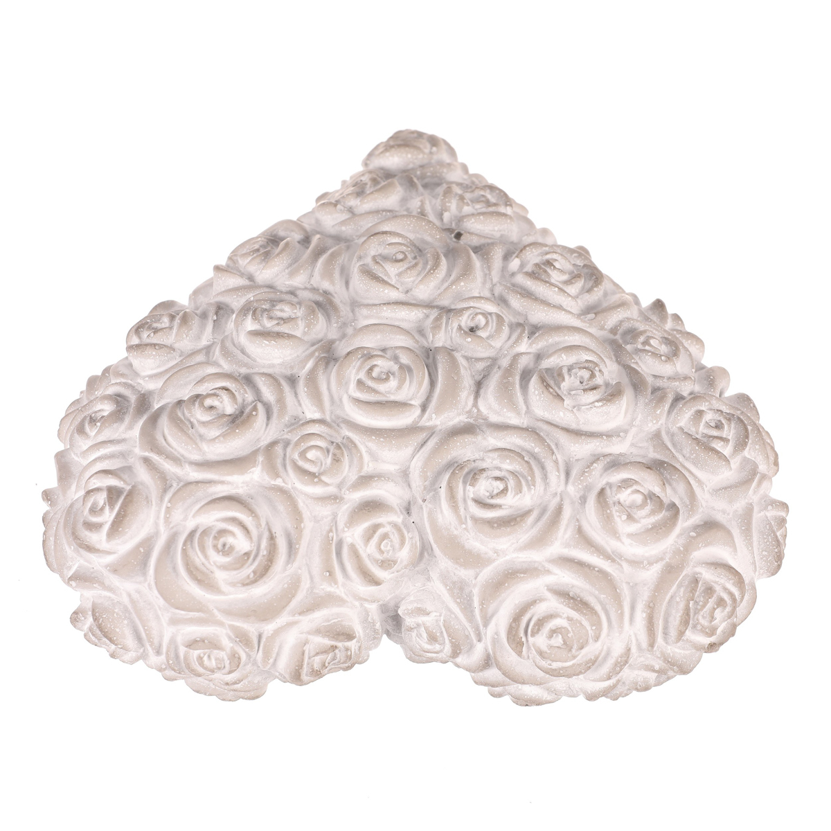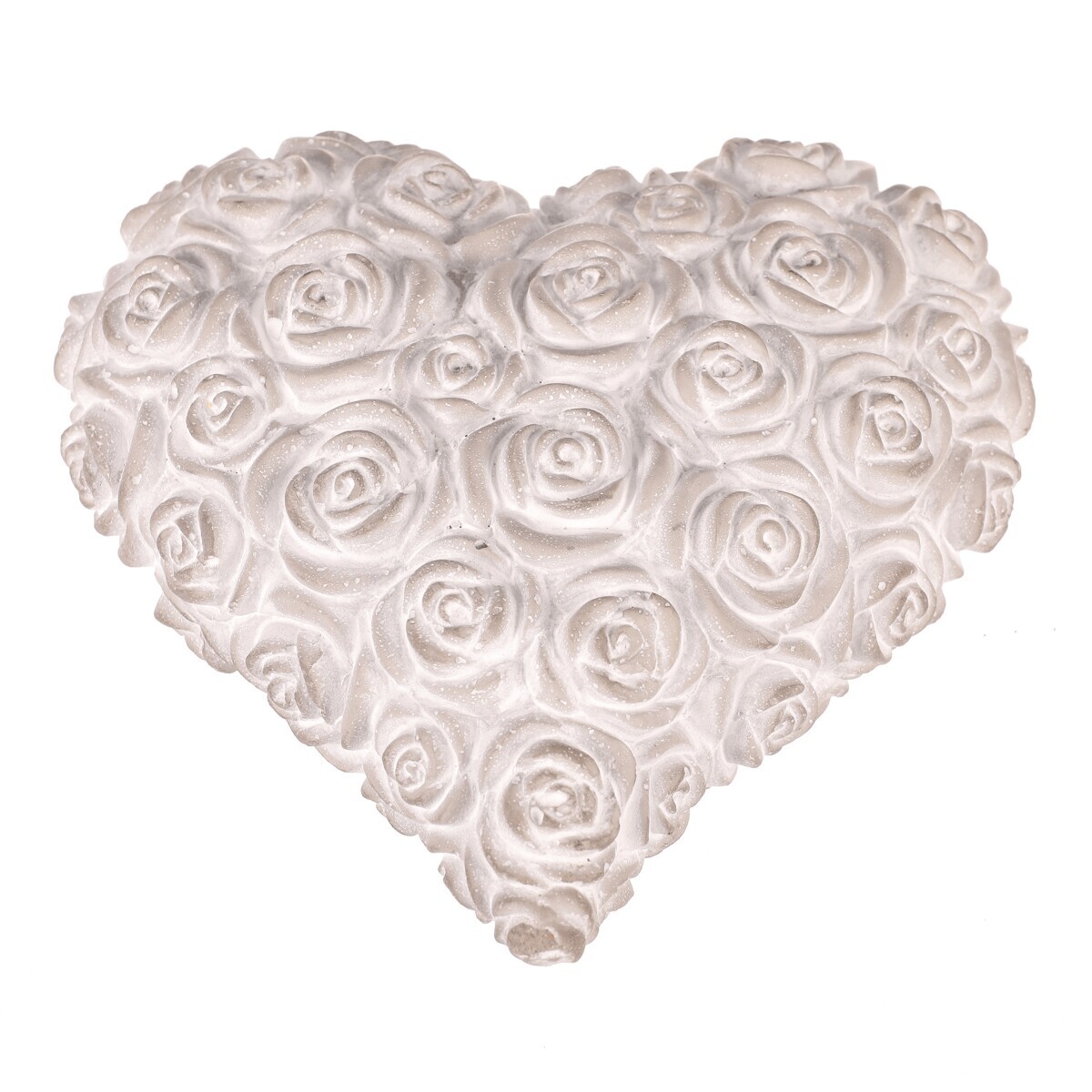 Tato světle šedá betonová dekorace ve tvaru srdce s reliéfem růží je navržena jako symbol úcty a vzpomínek. Jemné zpracování a neutrální odstín dodávají místu klidnou a důstojnou atmosféru, ideální pro pietní a vzpomínkové prostory.