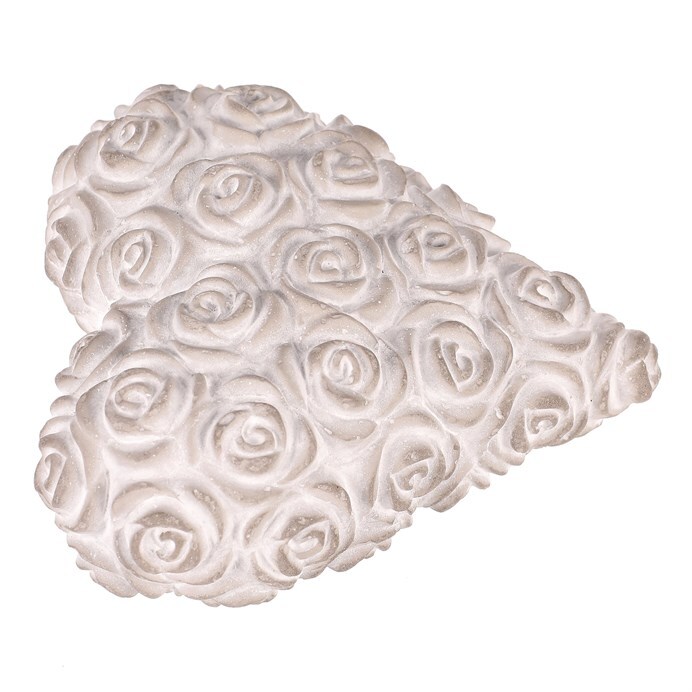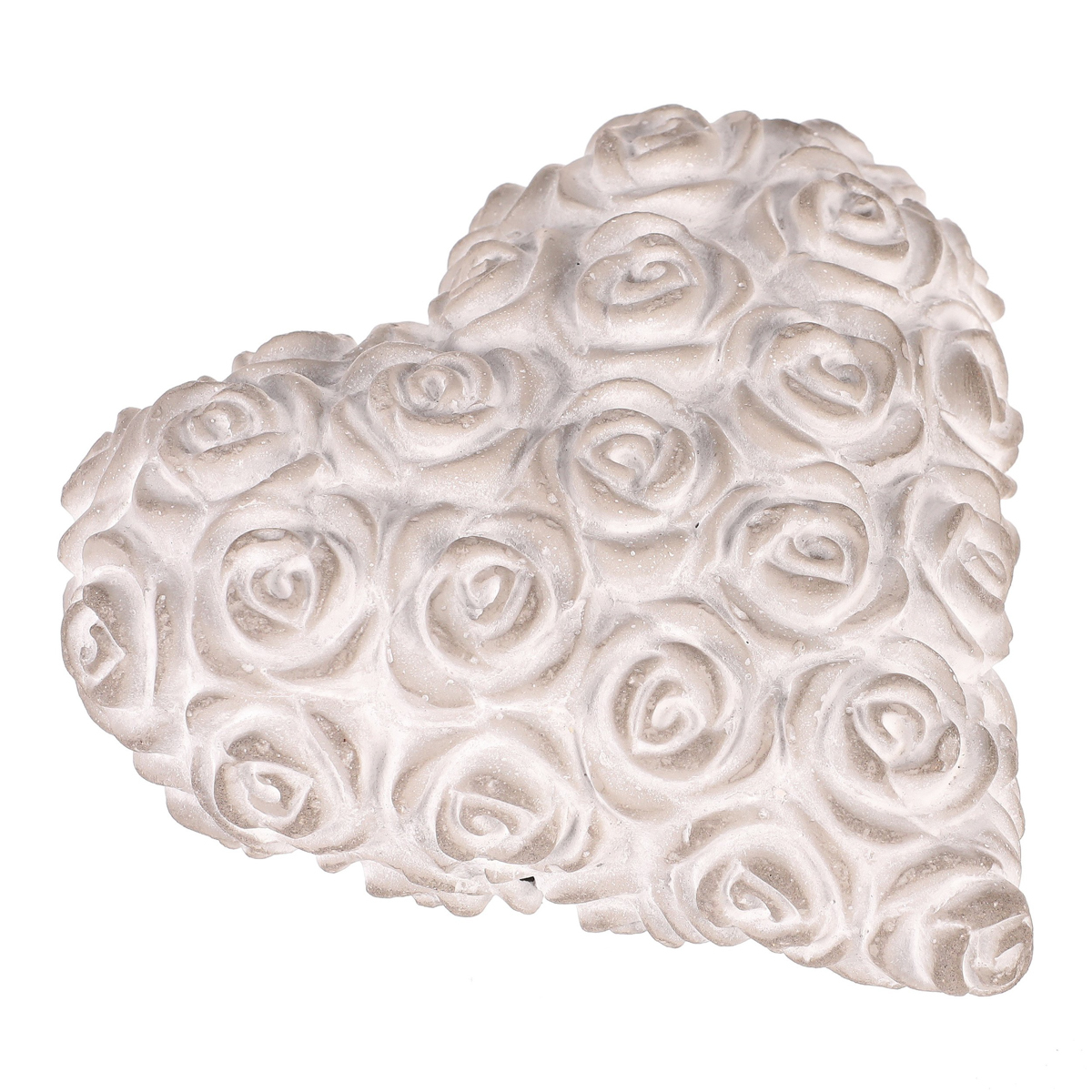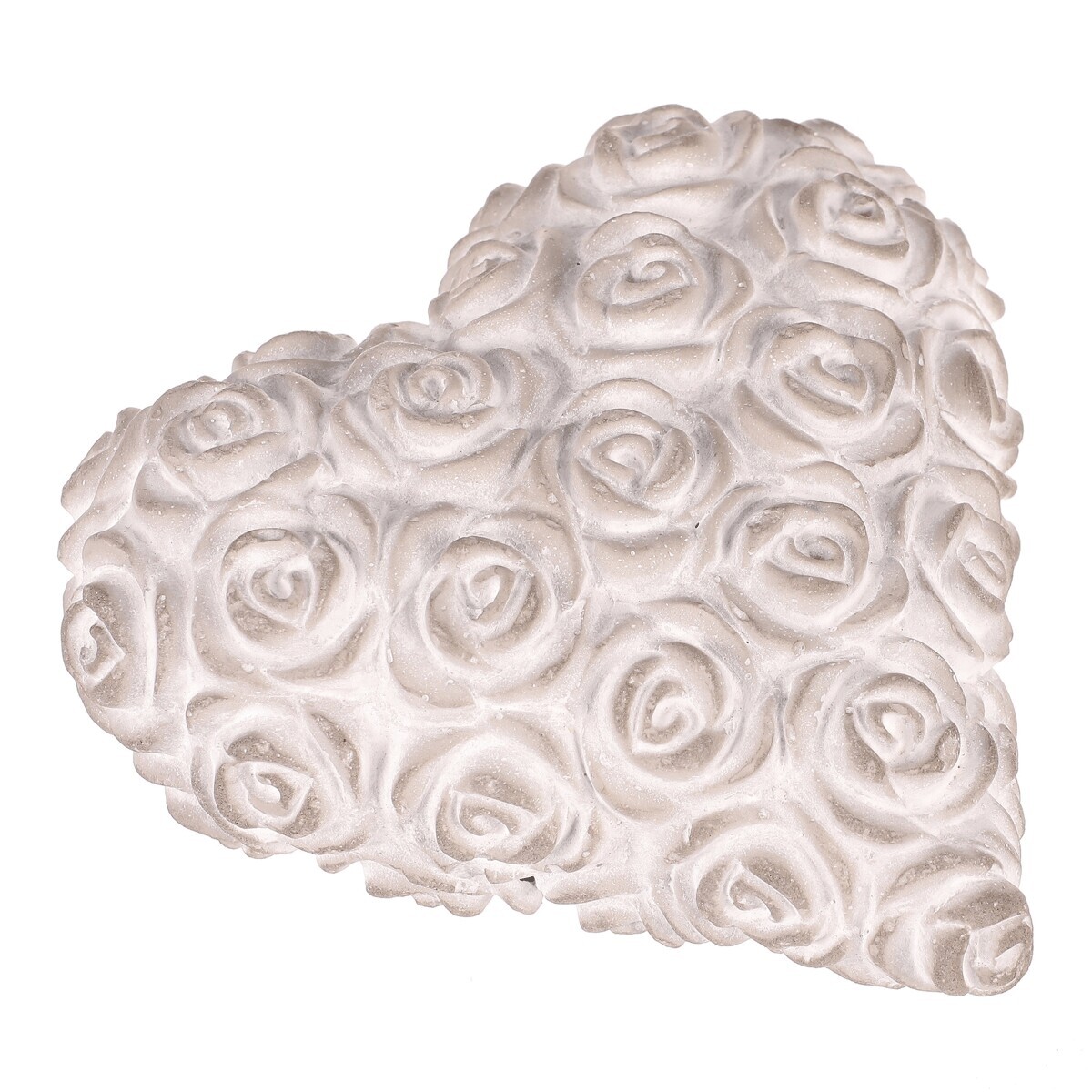 Tato světle šedá betonová dekorace ve tvaru srdce s reliéfem růží je navržena jako symbol úcty a vzpomínek. Jemné zpracování a neutrální odstín dodávají místu klidnou a důstojnou atmosféru, ideální pro pietní a vzpomínkové prostory.