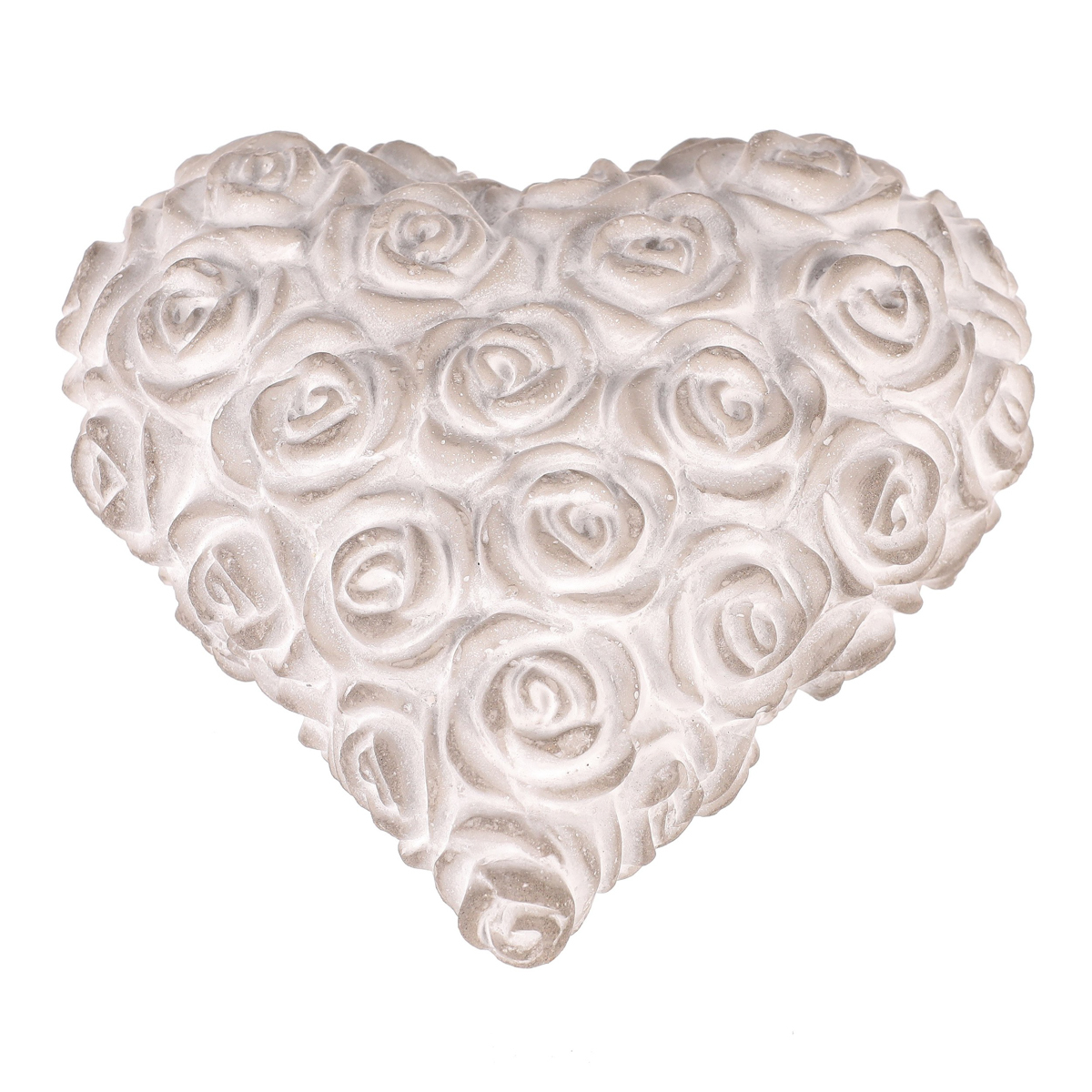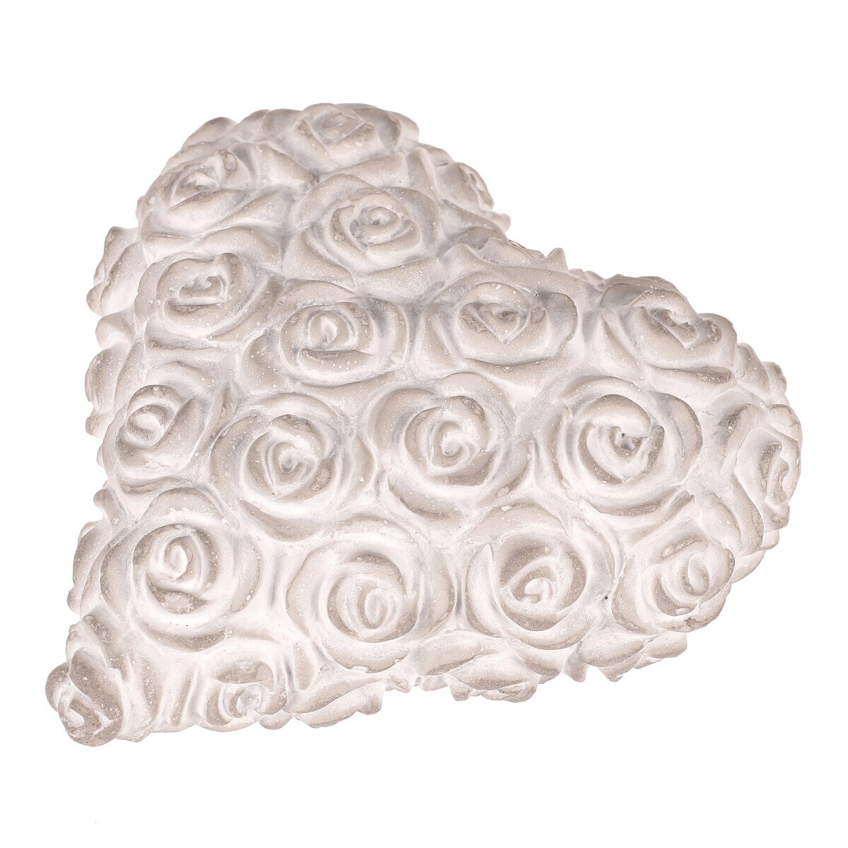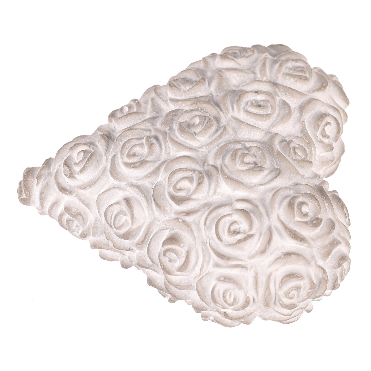 Tato světle šedá betonová dekorace ve tvaru srdce s reliéfem růží je navržena jako symbol úcty a vzpomínek. Jemné zpracování a neutrální odstín dodávají místu klidnou a důstojnou atmosféru, ideální pro pietní a vzpomínkové prostory.
