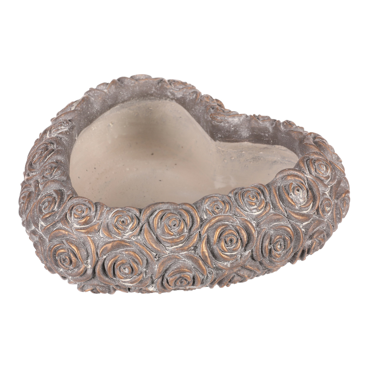 Tento šedý betonový obal na květiny s reliéfem květů růží ve tvaru srdce je elegantní volbou pro pietní prostory. Odolný materiál a jemný květinový motiv vytvářejí důstojnou atmosféru, která podporuje klidné vzpomínání a úctu k blízkým.