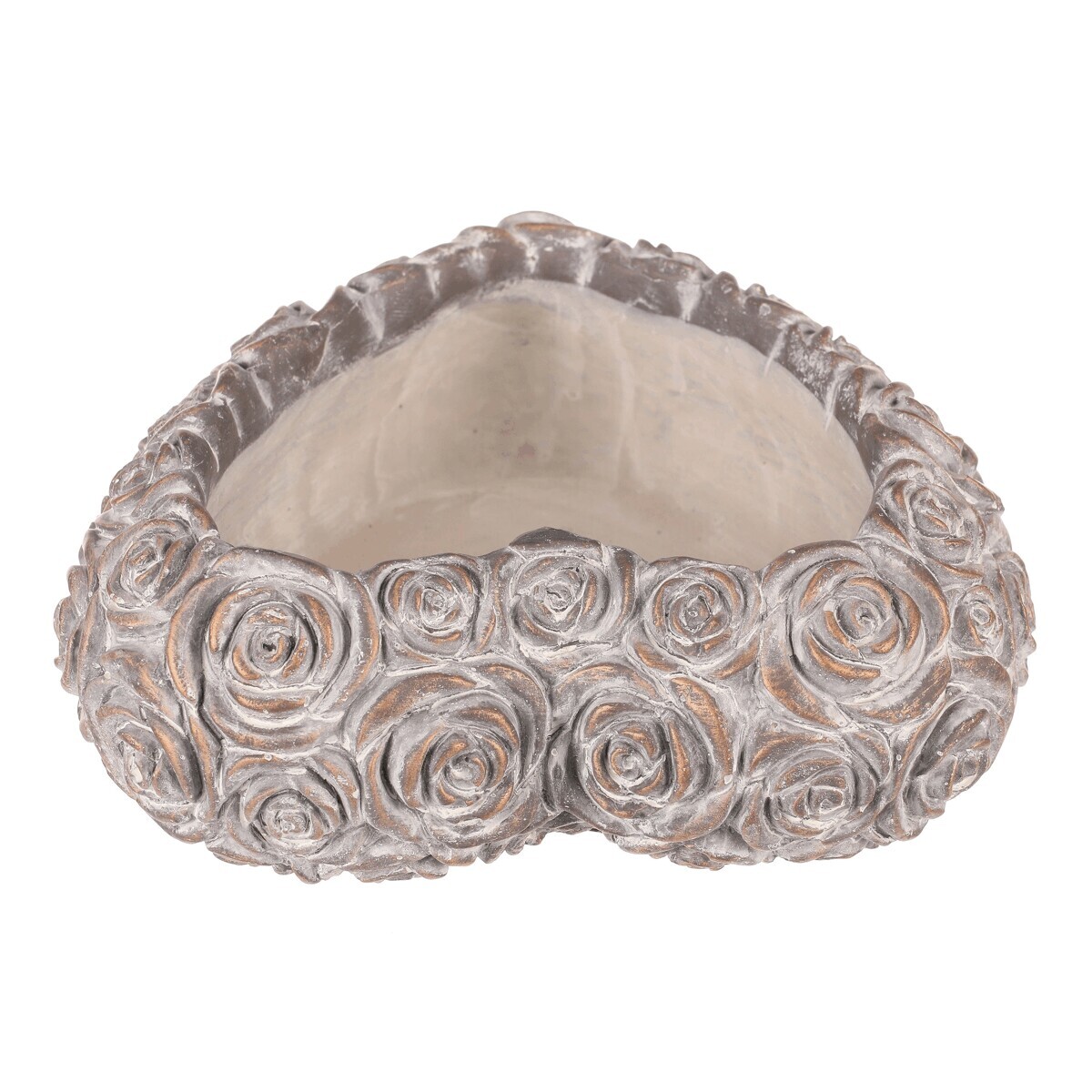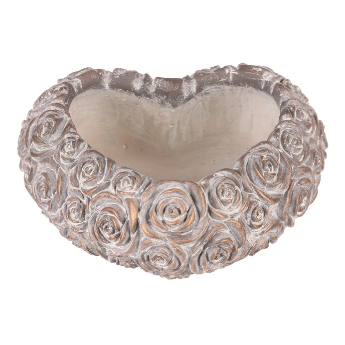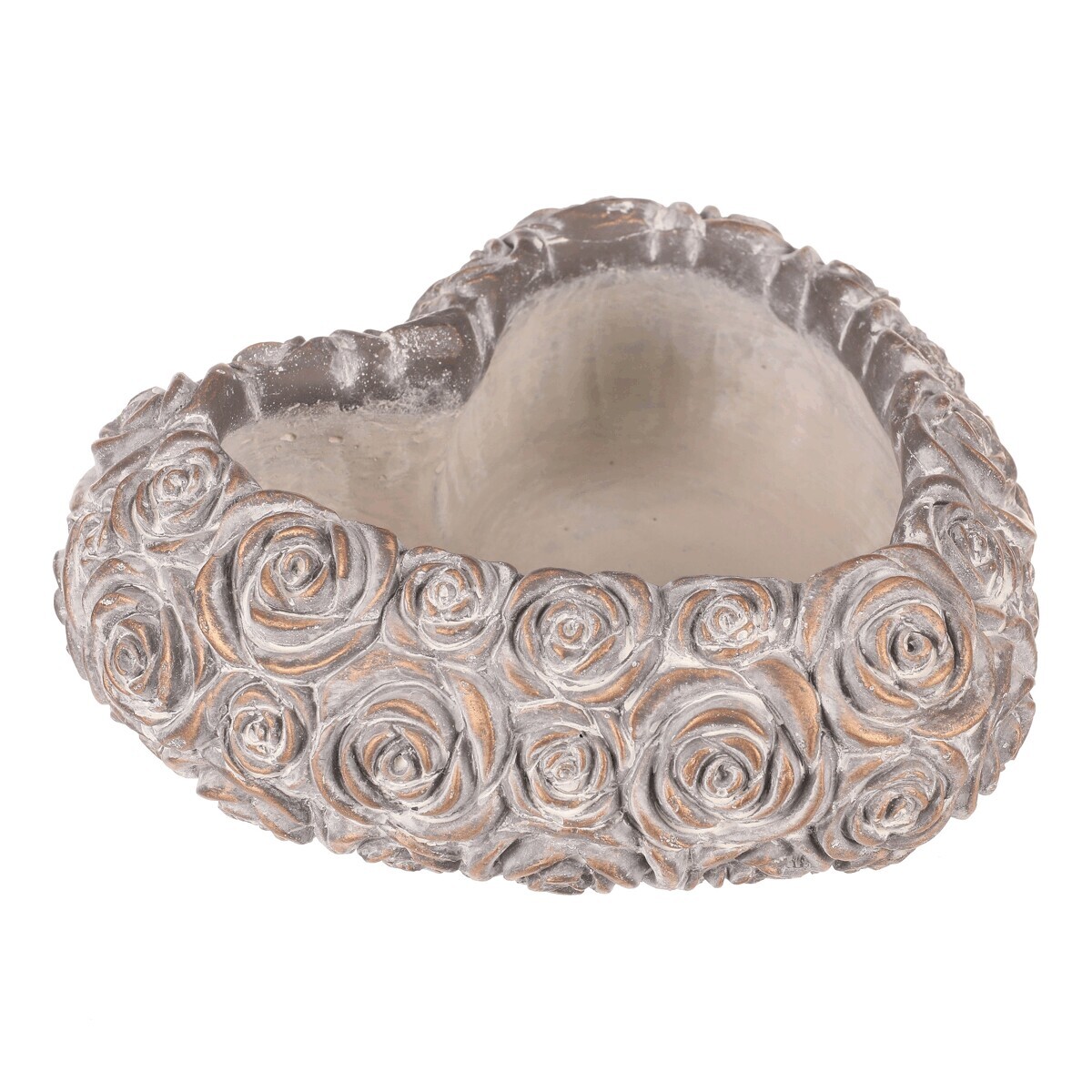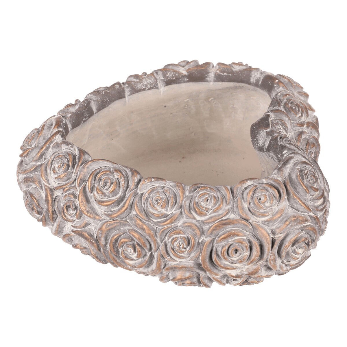 Tento šedý betonový obal na květiny s reliéfem květů růží ve tvaru srdce je elegantní volbou pro pietní prostory. Odolný materiál a jemný květinový motiv vytvářejí důstojnou atmosféru, která podporuje klidné vzpomínání a úctu k blízkým.