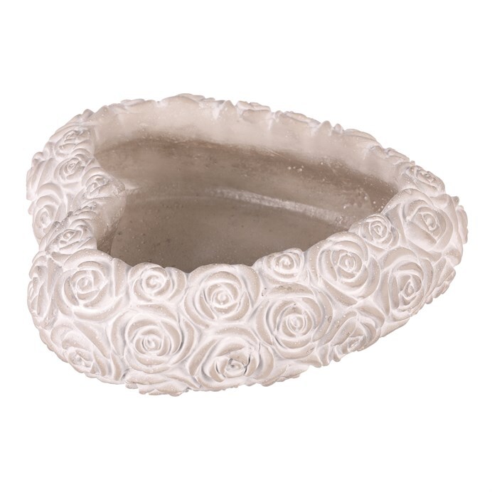 Tento světle šedý betonový obal na květiny s reliéfem květů růží ve tvaru srdce je elegantní volbou pro pietní prostory. Odolný materiál a jemný květinový motiv vytvářejí důstojnou atmosféru, která podporuje klidné vzpomínání a úctu k blízkým.